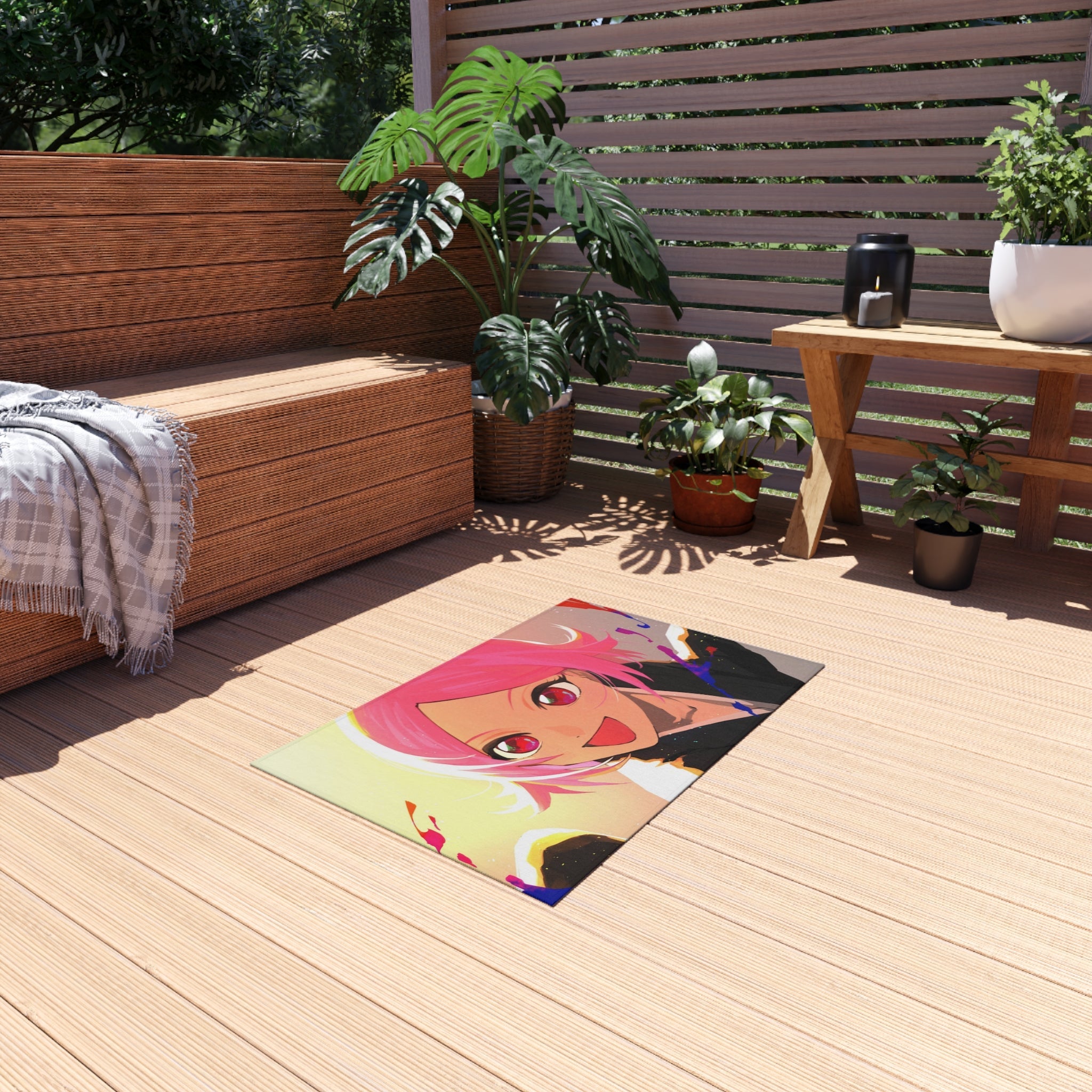 This area rug is crafted with durable construction and hemmed edges, offering lasting quality and style. A coated backing keeps the piece in place, making it the perfect finishing touch for any interior design. Vibrant colors and anime allow you to effortlessly match your existing aesthetic.