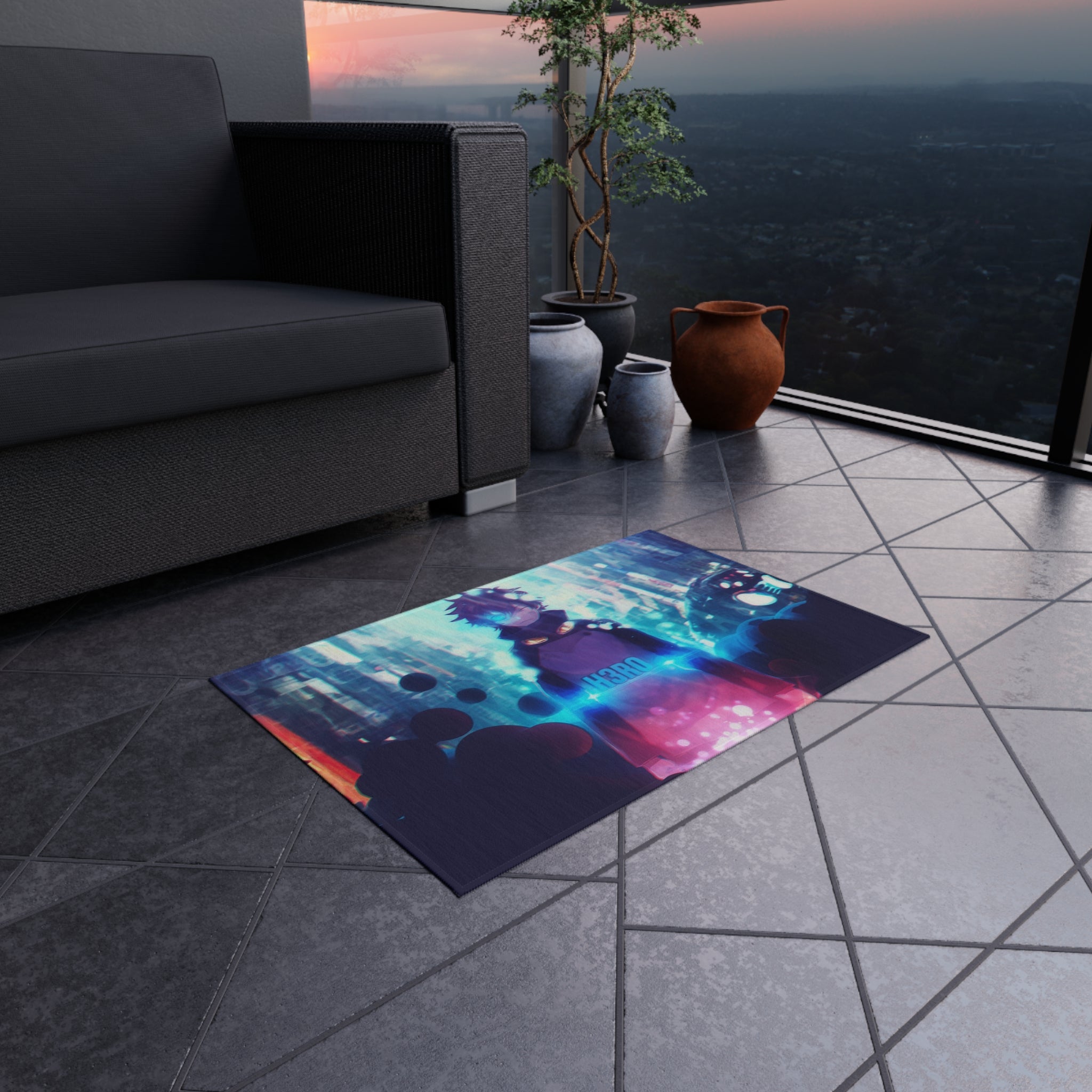 This area rug is crafted with durable construction and hemmed edges, offering lasting quality and style. A coated backing keeps the piece in place, making it the perfect finishing touch for any interior design. Vibrant colors and anime allow you to effortlessly match your existing aesthetic.