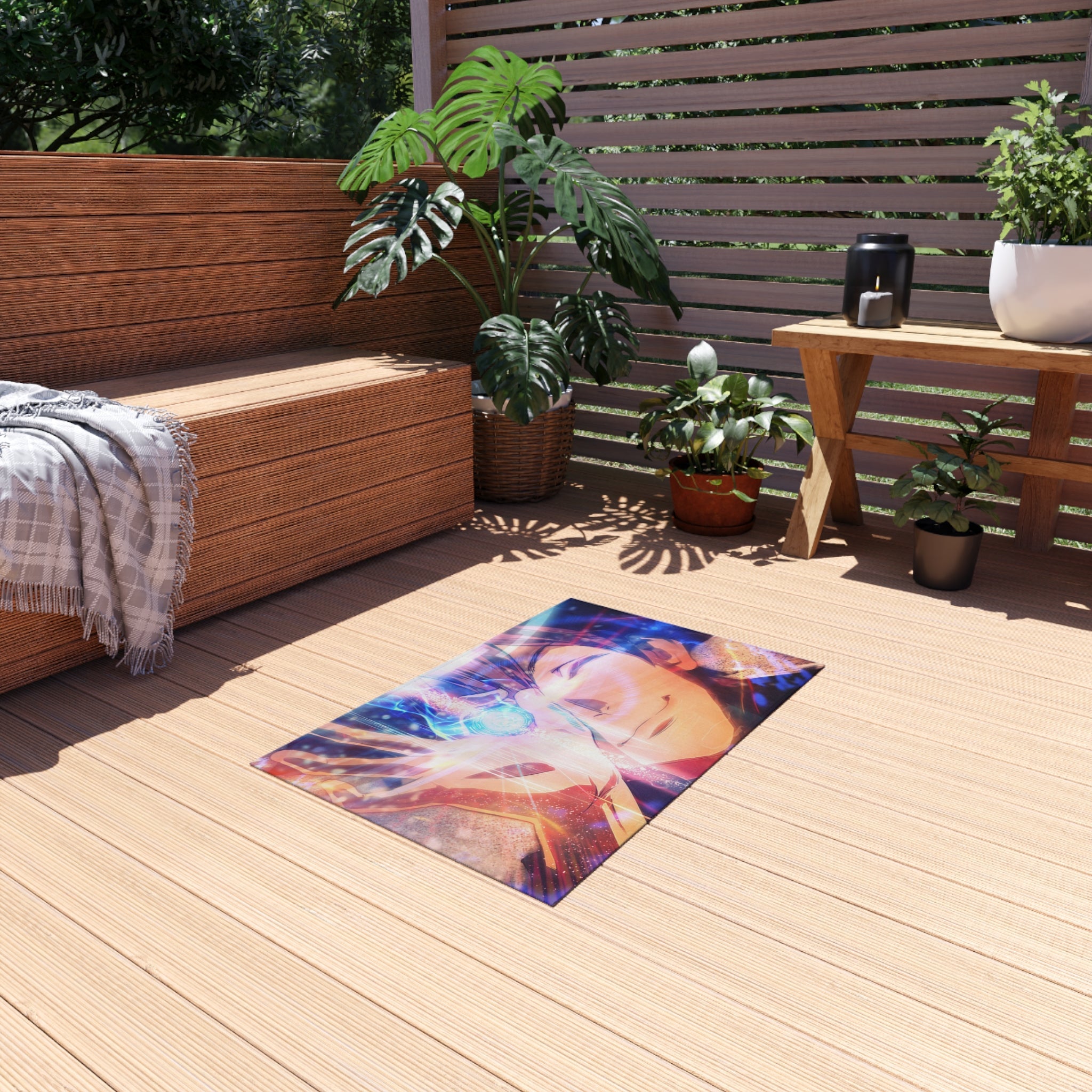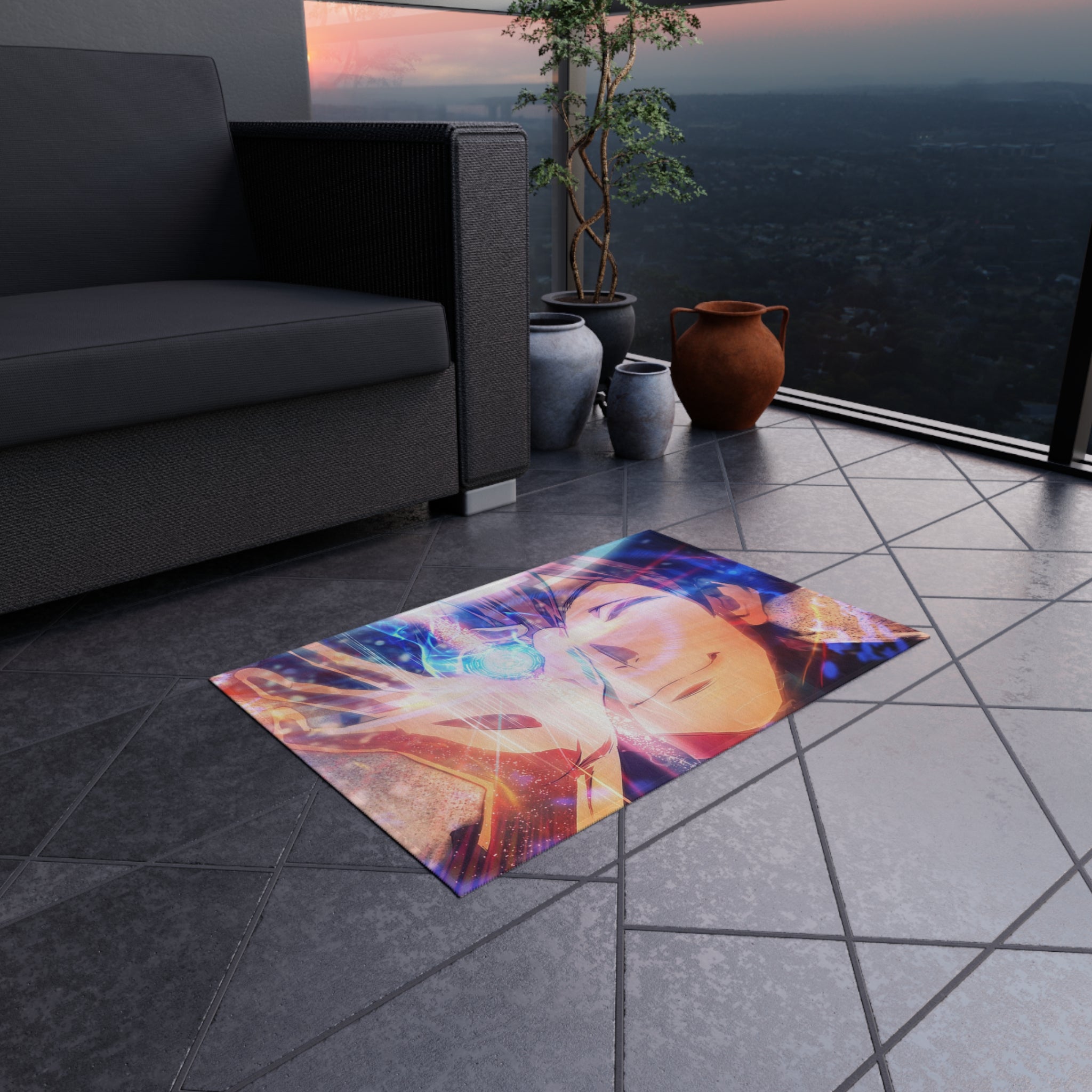 This area rug is crafted with durable construction and hemmed edges, offering lasting quality and style. A coated backing keeps the piece in place, making it the perfect finishing touch for any interior design. Vibrant colors and anime allow you to effortlessly match your existing aesthetic.