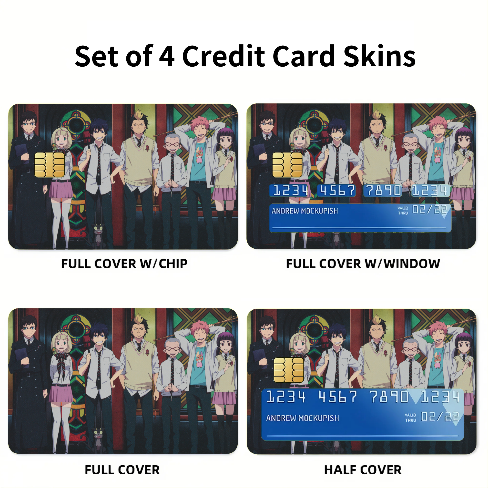 Blue Exorcist Rin Okumura, Yukio Okumura, Kuro, Shiemi Moriyama  Credit Card Skins (4-in-1 Pack)