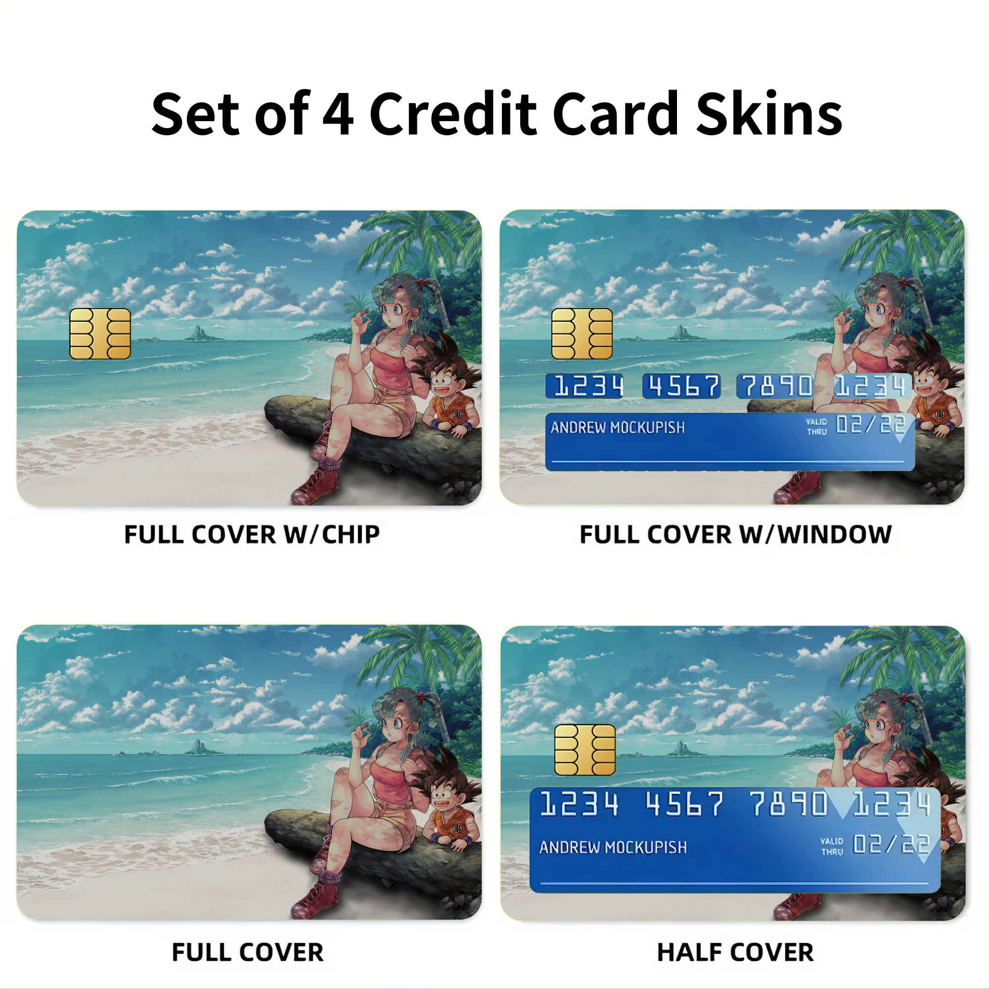 Bulma and Goku Dragon Ball Credit Card Skins (4-in-1 Pack)