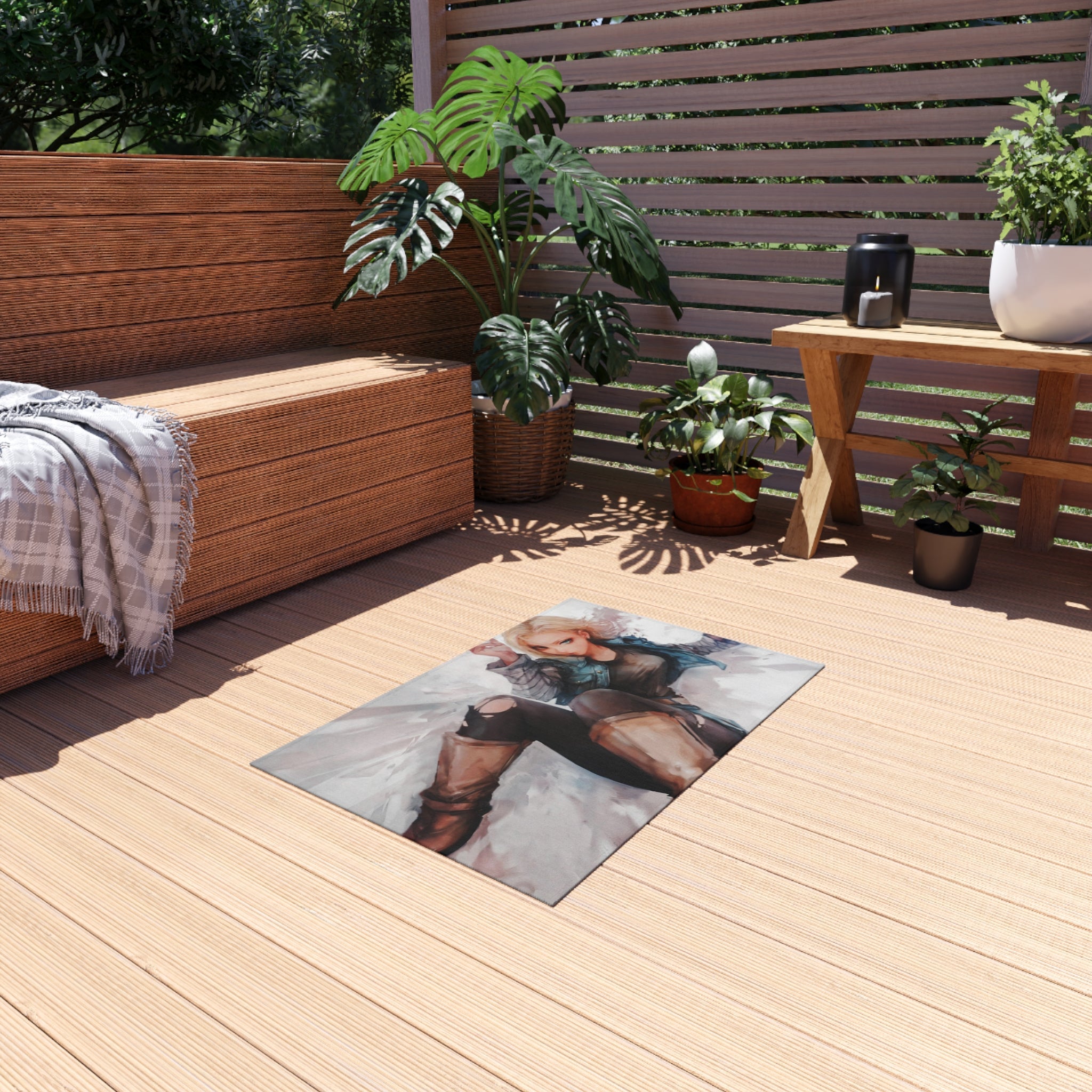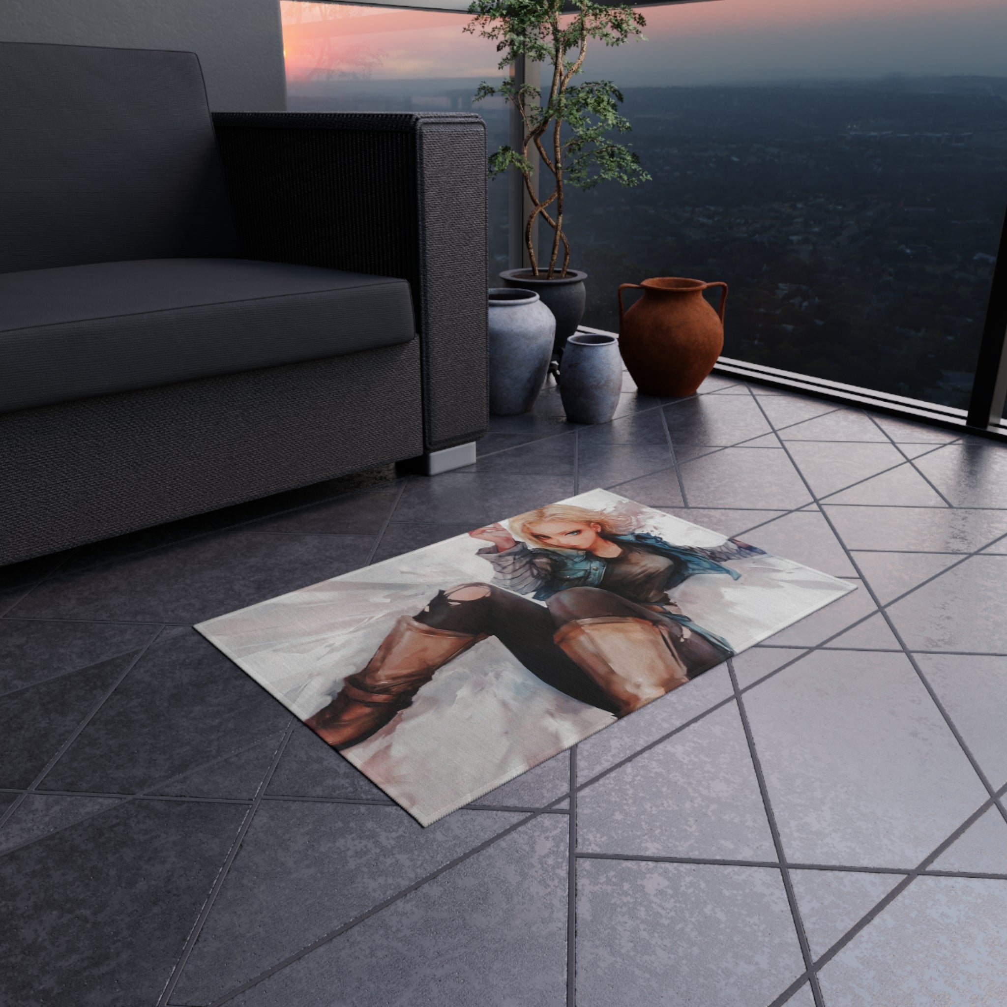 This area rug is crafted with durable construction and hemmed edges, offering lasting quality and style. A coated backing keeps the piece in place, making it the perfect finishing touch for any interior design. Vibrant colors and anime allow you to effortlessly match your existing aesthetic.