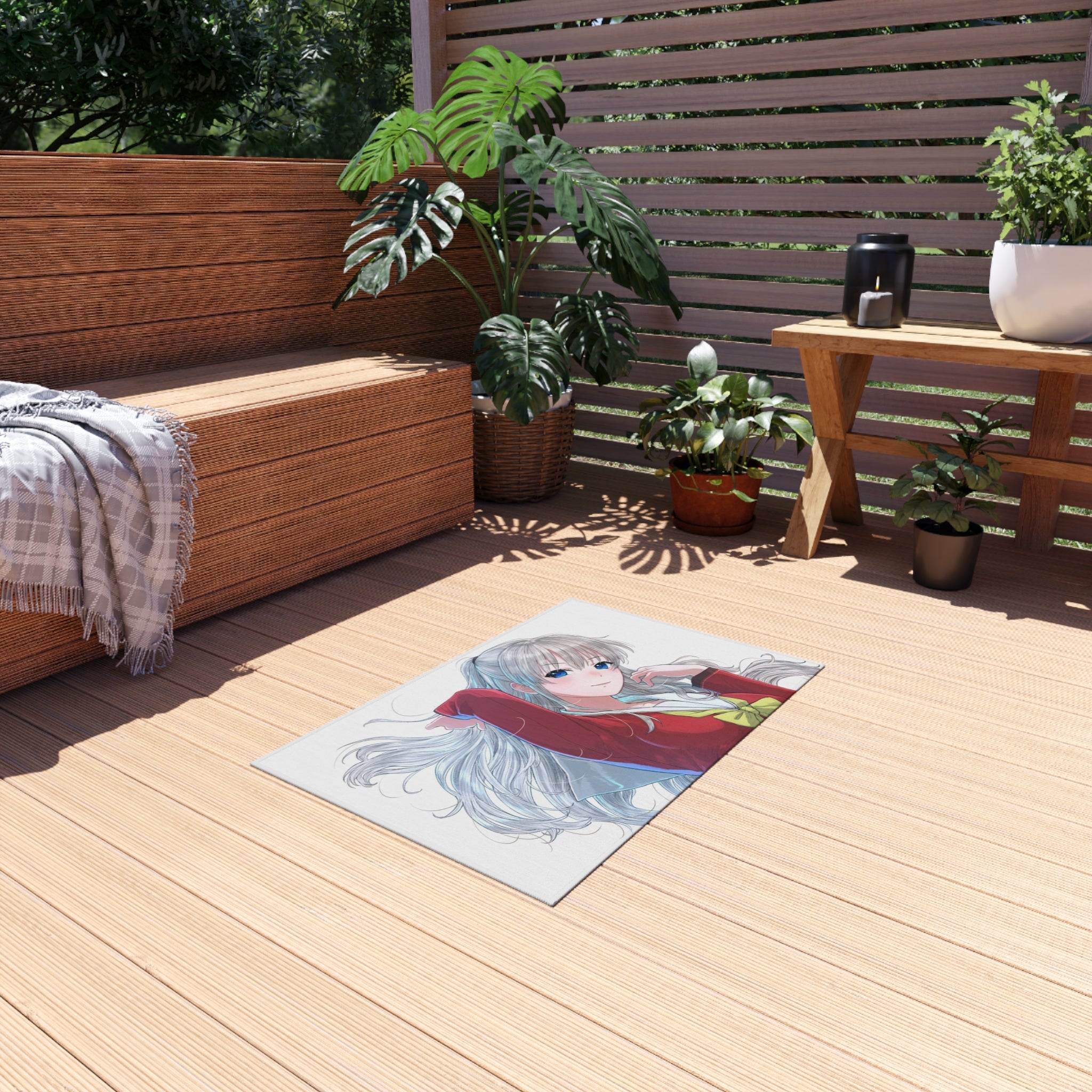 This area rug is crafted with durable construction and hemmed edges, offering lasting quality and style. A coated backing keeps the piece in place, making it the perfect finishing touch for any interior design. Vibrant colors and anime allow you to effortlessly match your existing aesthetic.