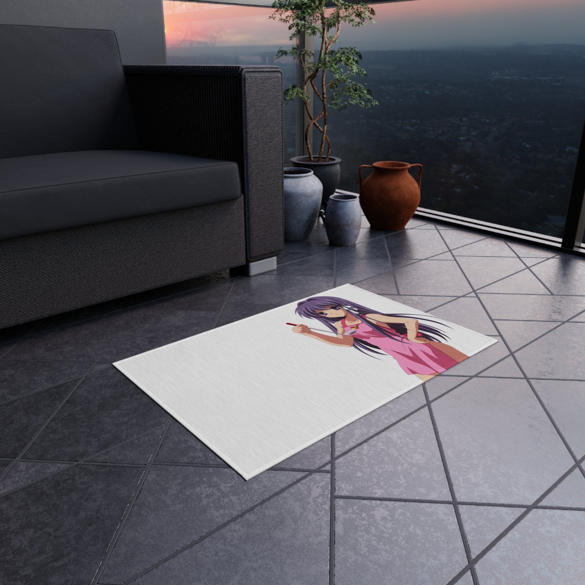 This area rug is crafted with durable construction and hemmed edges, offering lasting quality and style. A coated backing keeps the piece in place, making it the perfect finishing touch for any interior design. Vibrant colors and anime allow you to effortlessly match your existing aesthetic.