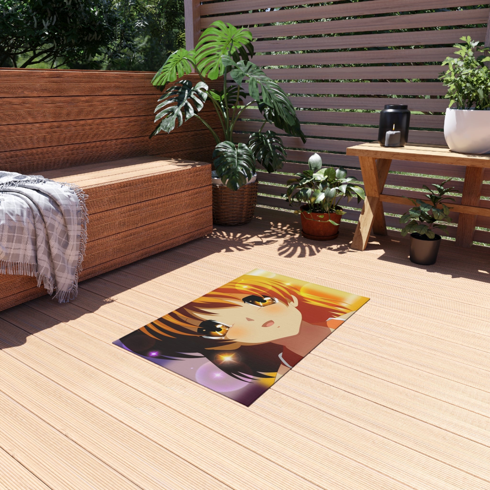 This area rug is crafted with durable construction and hemmed edges, offering lasting quality and style. A coated backing keeps the piece in place, making it the perfect finishing touch for any interior design. Vibrant colors and anime allow you to effortlessly match your existing aesthetic.