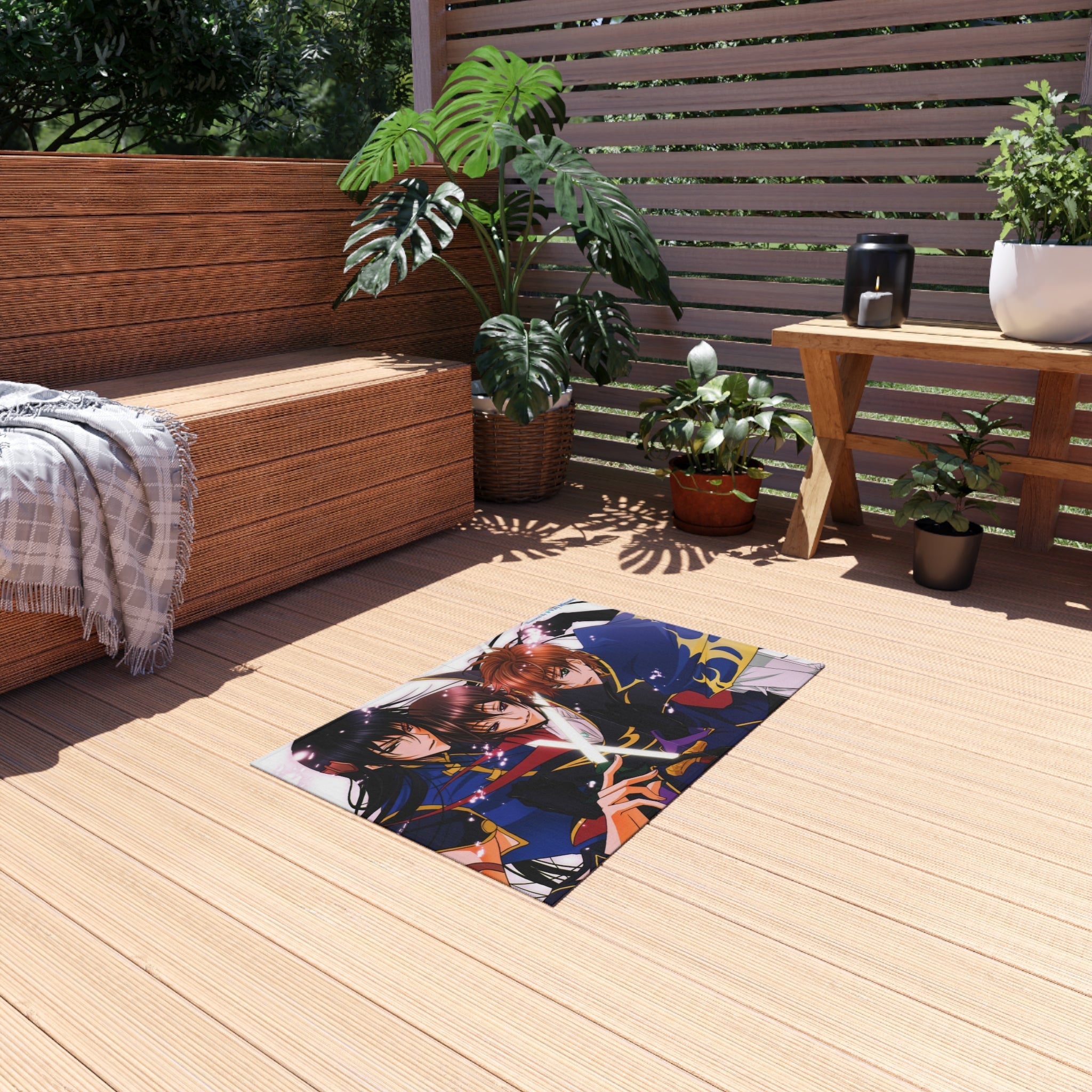 This area rug is crafted with durable construction and hemmed edges, offering lasting quality and style. A coated backing keeps the piece in place, making it the perfect finishing touch for any interior design. Vibrant colors and anime allow you to effortlessly match your existing aesthetic.
