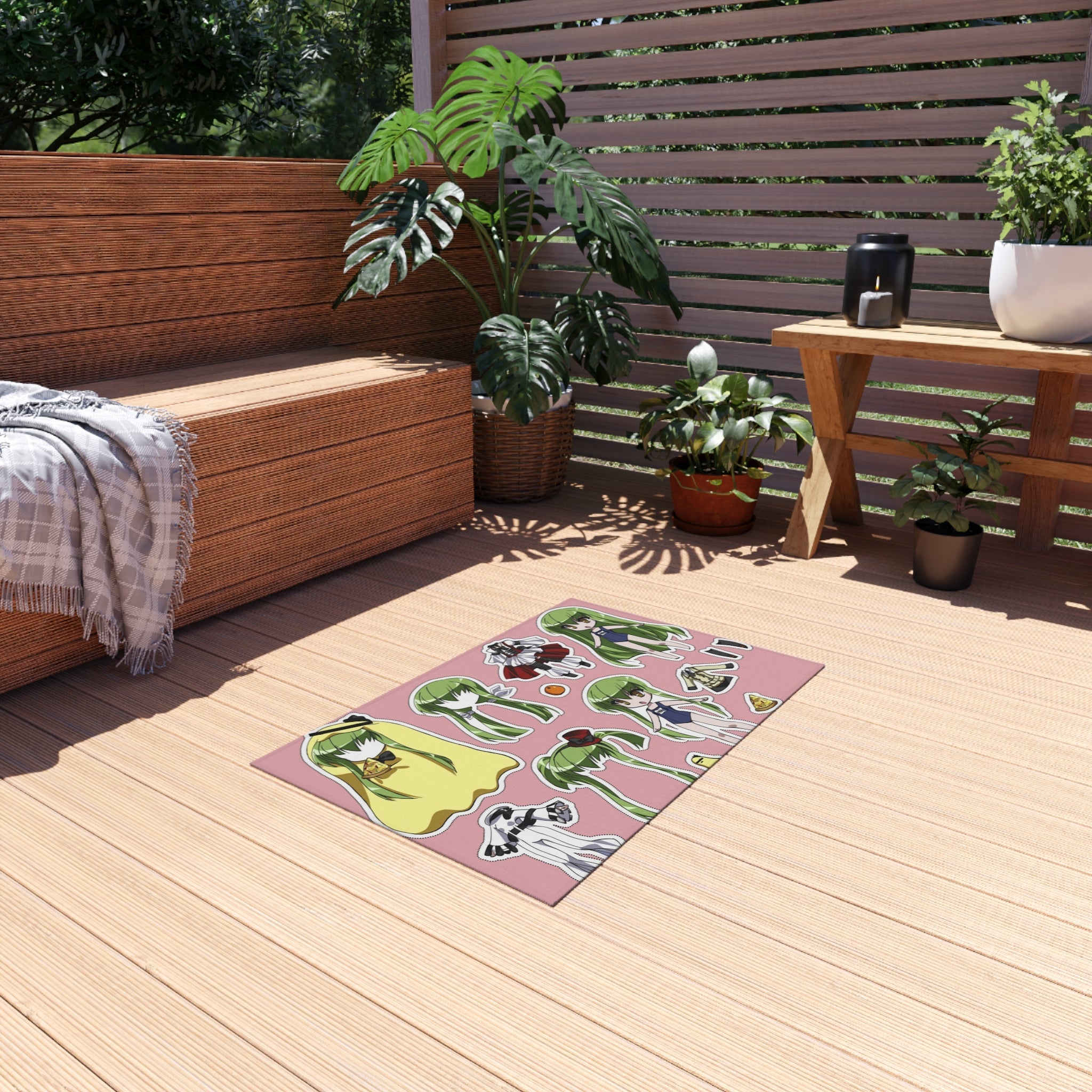 This area rug is crafted with durable construction and hemmed edges, offering lasting quality and style. A coated backing keeps the piece in place, making it the perfect finishing touch for any interior design. Vibrant colors and anime allow you to effortlessly match your existing aesthetic.