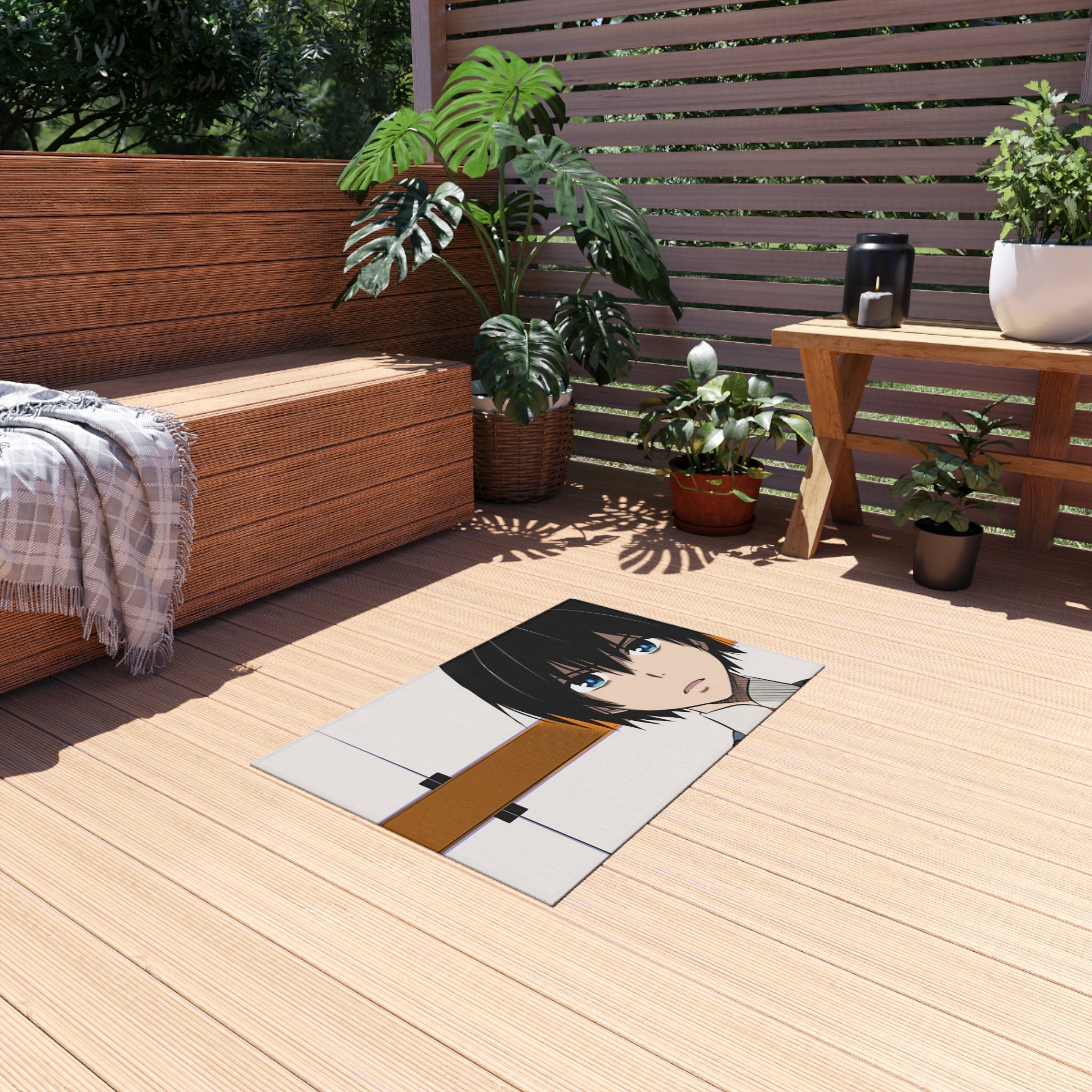 This area rug is crafted with durable construction and hemmed edges, offering lasting quality and style. A coated backing keeps the piece in place, making it the perfect finishing touch for any interior design. Vibrant colors and anime allow you to effortlessly match your existing aesthetic.