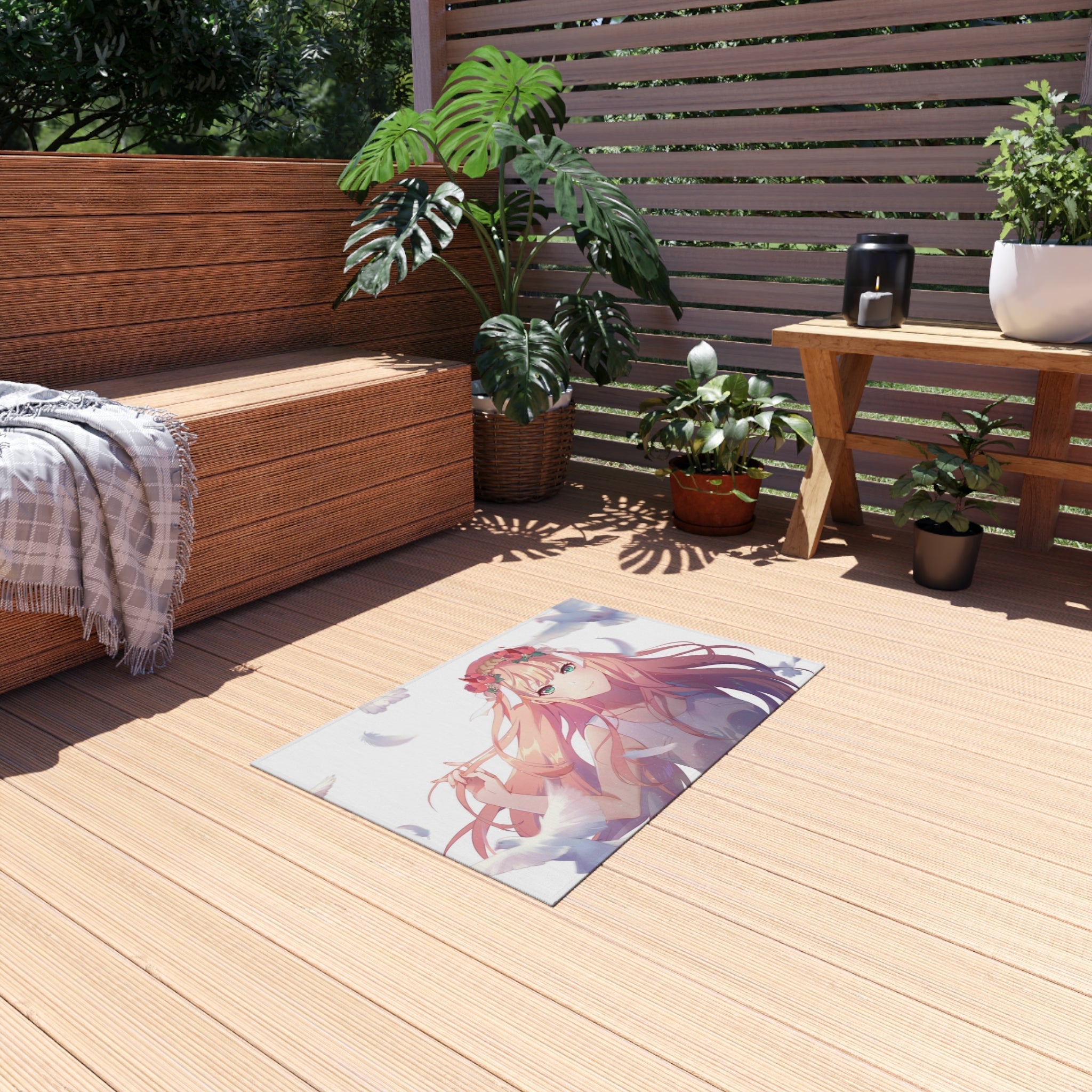 This area rug is crafted with durable construction and hemmed edges, offering lasting quality and style. A coated backing keeps the piece in place, making it the perfect finishing touch for any interior design. Vibrant colors and anime allow you to effortlessly match your existing aesthetic.
