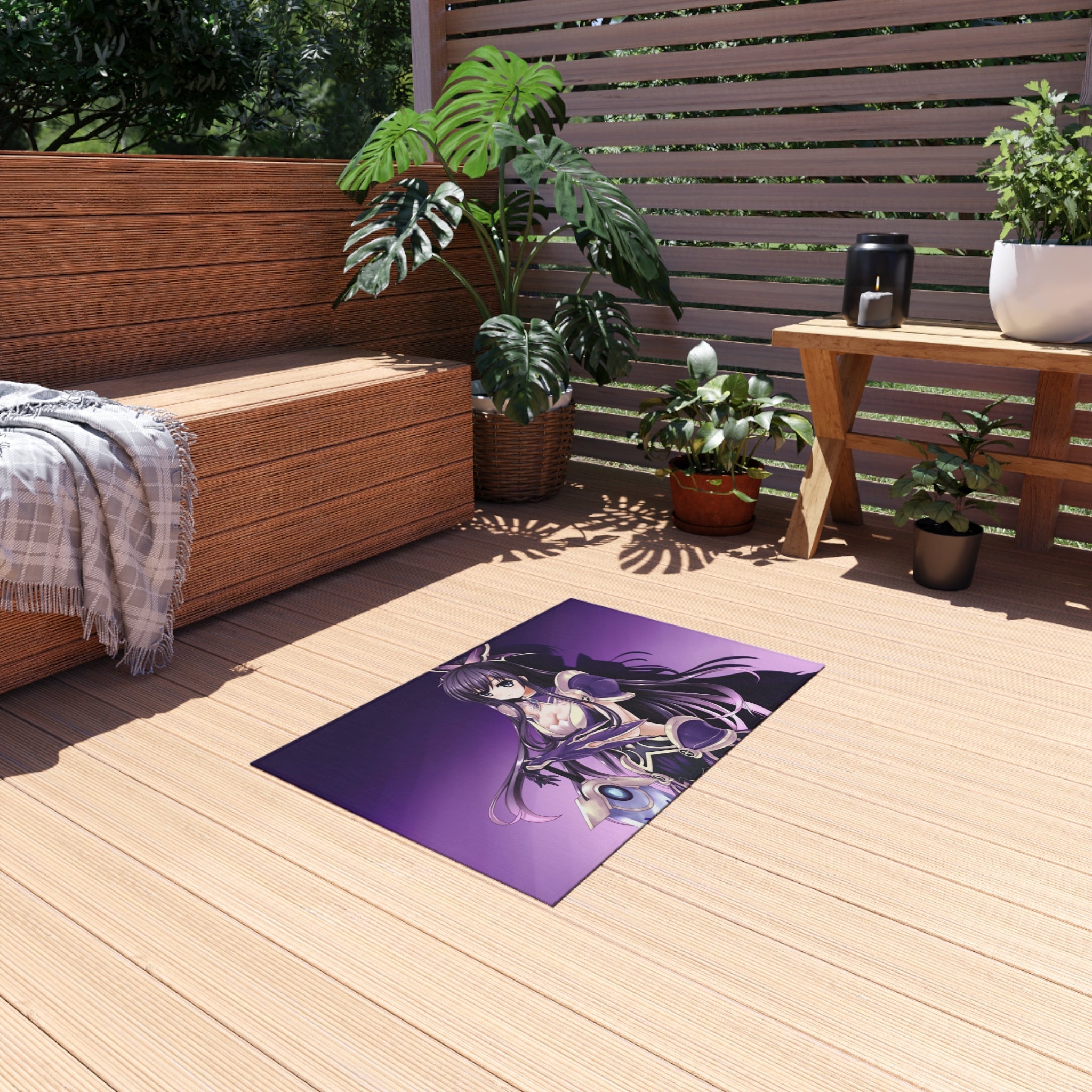 This area rug is crafted with durable construction and hemmed edges, offering lasting quality and style. A coated backing keeps the piece in place, making it the perfect finishing touch for any interior design. Vibrant colors and anime allow you to effortlessly match your existing aesthetic.