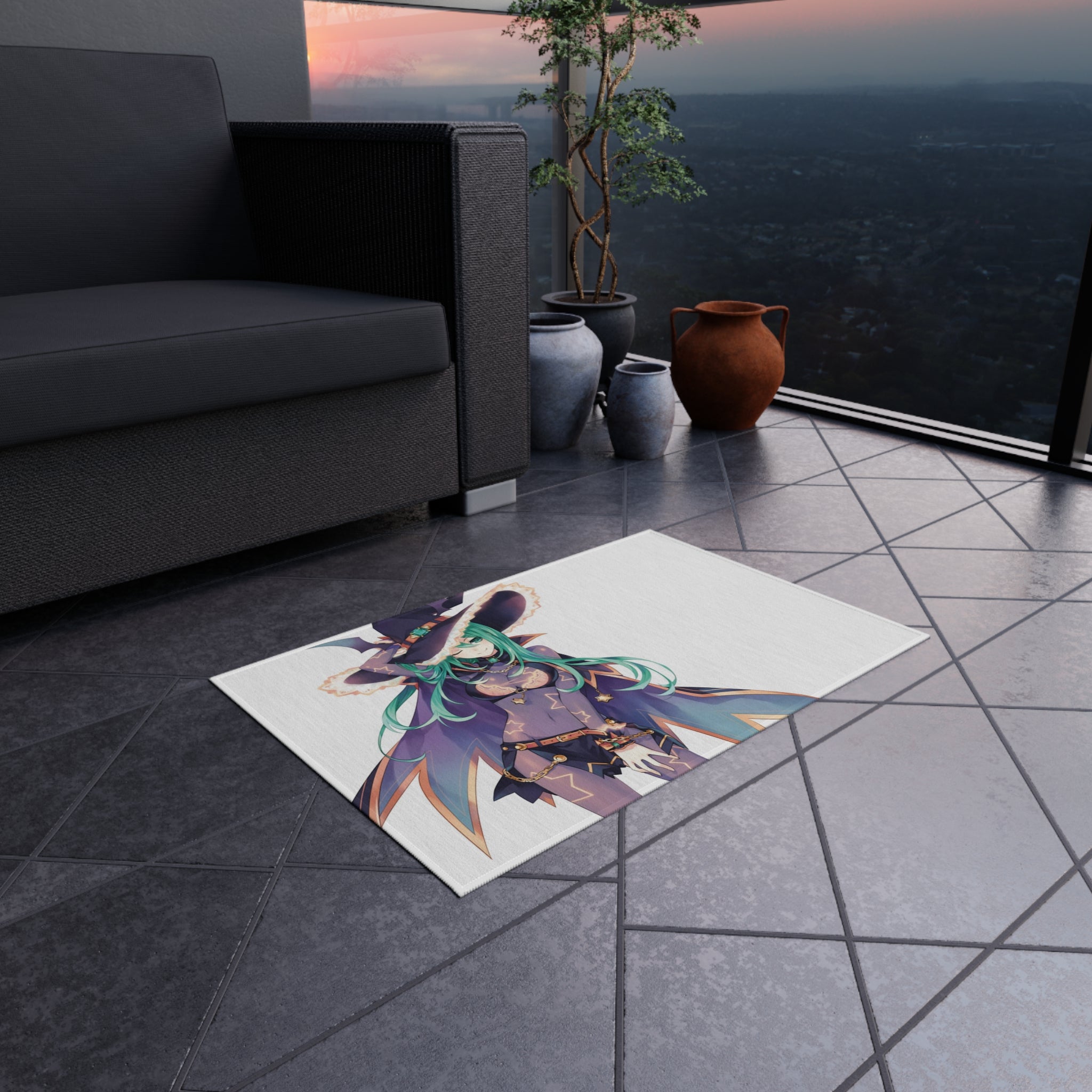 This area rug is crafted with durable construction and hemmed edges, offering lasting quality and style. A coated backing keeps the piece in place, making it the perfect finishing touch for any interior design. Vibrant colors and anime allow you to effortlessly match your existing aesthetic.