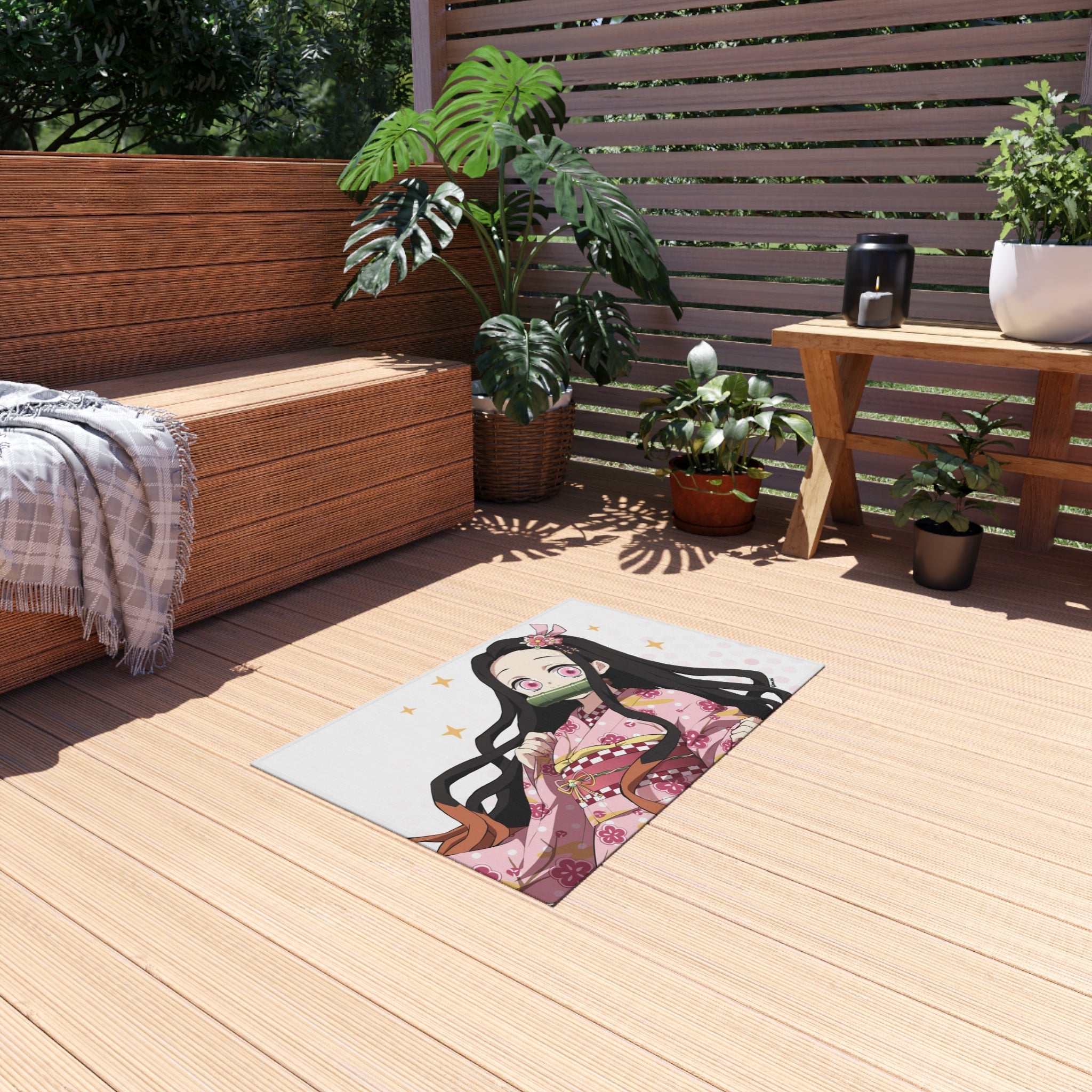 This area rug is crafted with durable construction and hemmed edges, offering lasting quality and style. A coated backing keeps the piece in place, making it the perfect finishing touch for any interior design. Vibrant colors and anime allow you to effortlessly match your existing aesthetic.