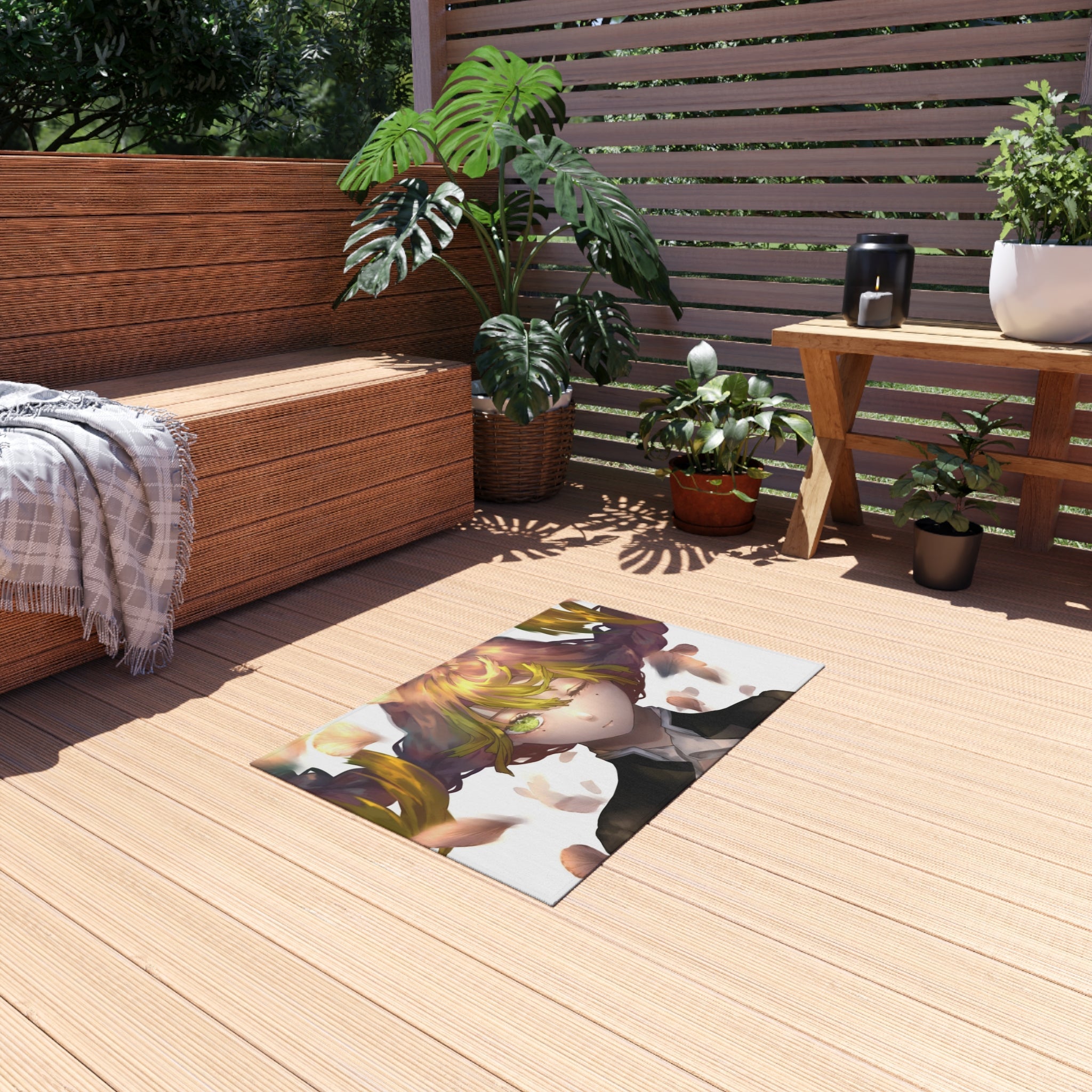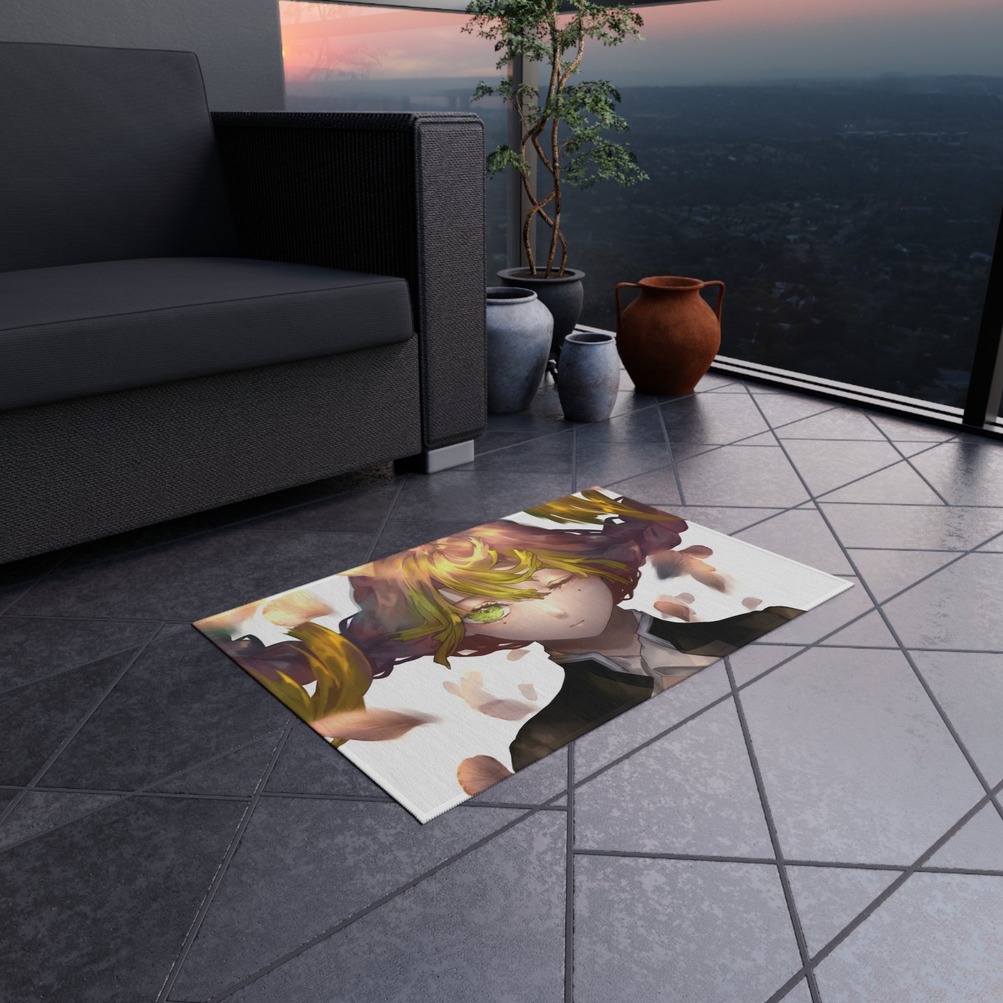 This area rug is crafted with durable construction and hemmed edges, offering lasting quality and style. A coated backing keeps the piece in place, making it the perfect finishing touch for any interior design. Vibrant colors and anime allow you to effortlessly match your existing aesthetic.