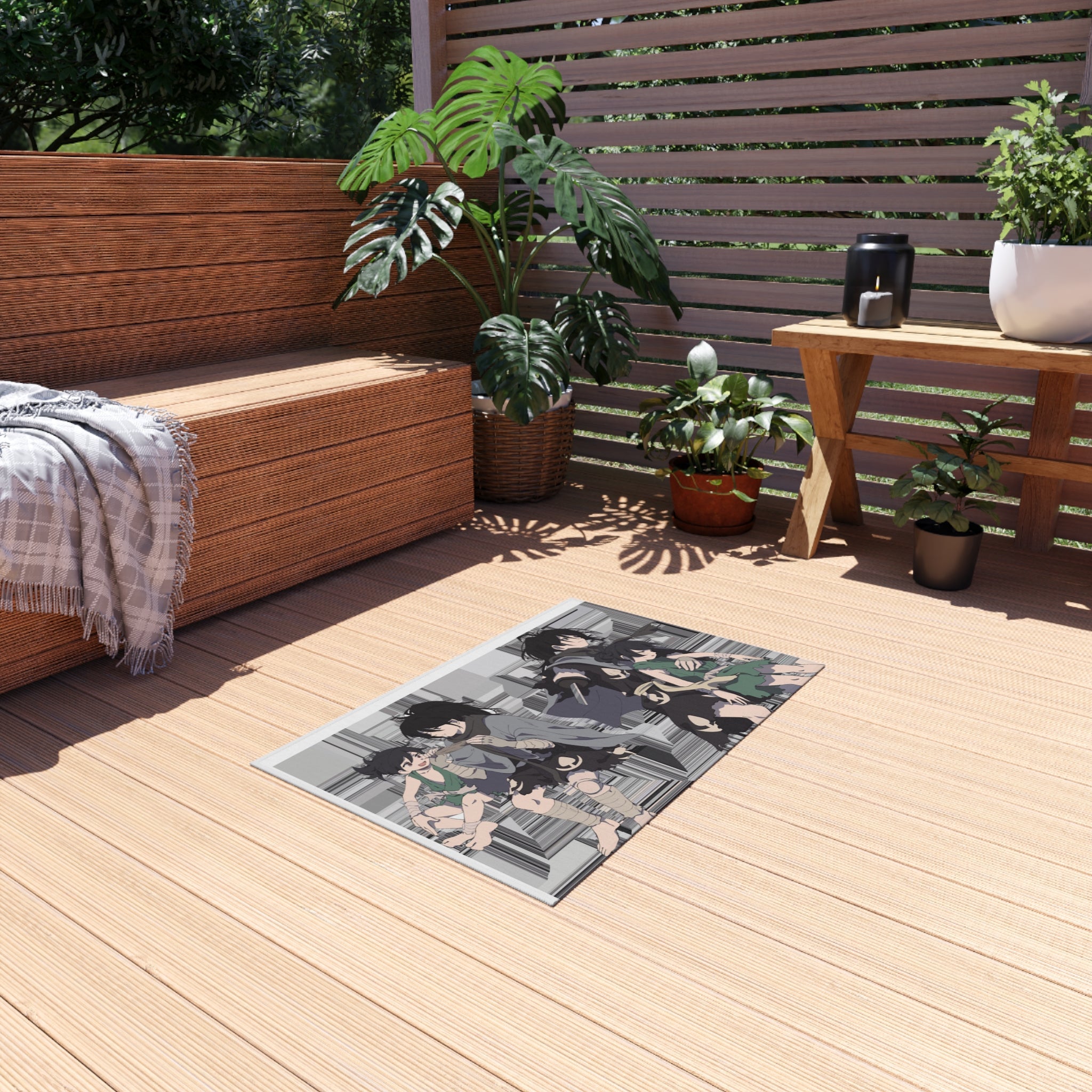 This area rug is crafted with durable construction and hemmed edges, offering lasting quality and style. A coated backing keeps the piece in place, making it the perfect finishing touch for any interior design. Vibrant colors and anime allow you to effortlessly match your existing aesthetic.