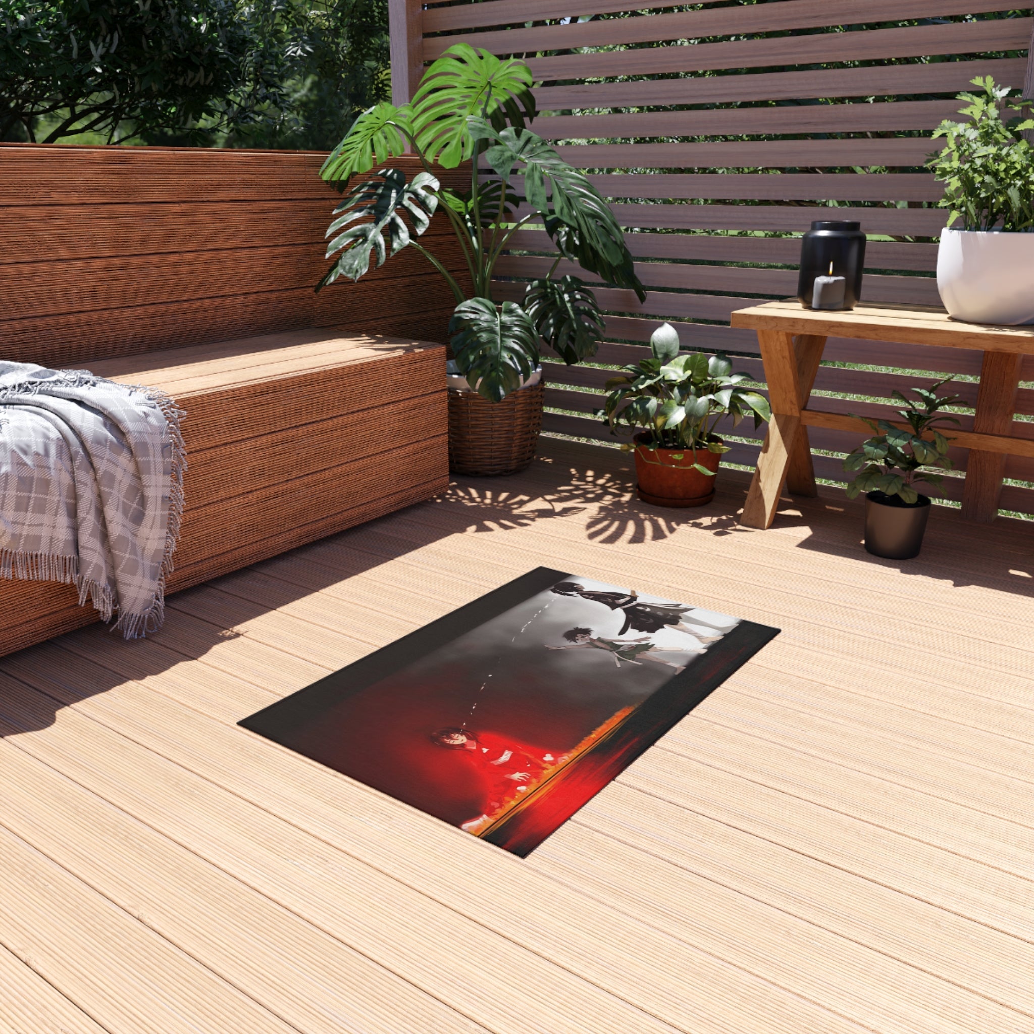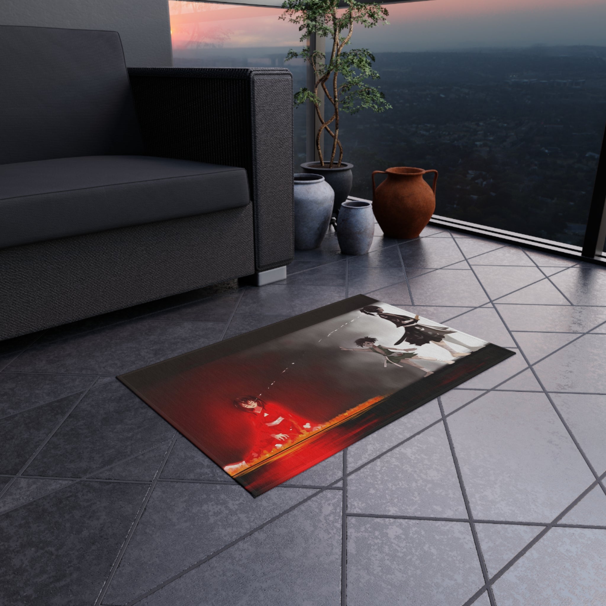 This area rug is crafted with durable construction and hemmed edges, offering lasting quality and style. A coated backing keeps the piece in place, making it the perfect finishing touch for any interior design. Vibrant colors and anime allow you to effortlessly match your existing aesthetic.