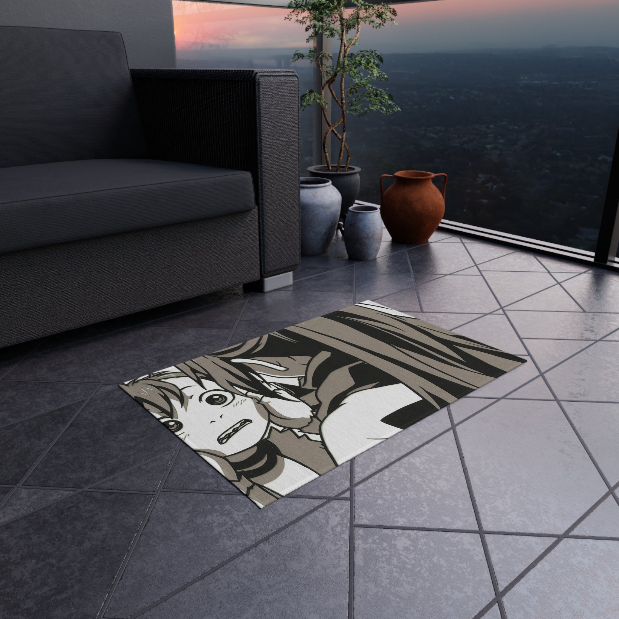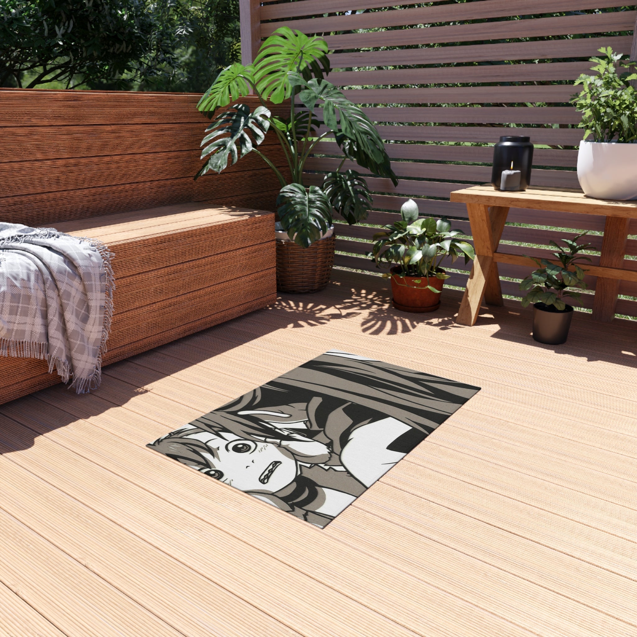 This area rug is crafted with durable construction and hemmed edges, offering lasting quality and style. A coated backing keeps the piece in place, making it the perfect finishing touch for any interior design. Vibrant colors and anime allow you to effortlessly match your existing aesthetic.