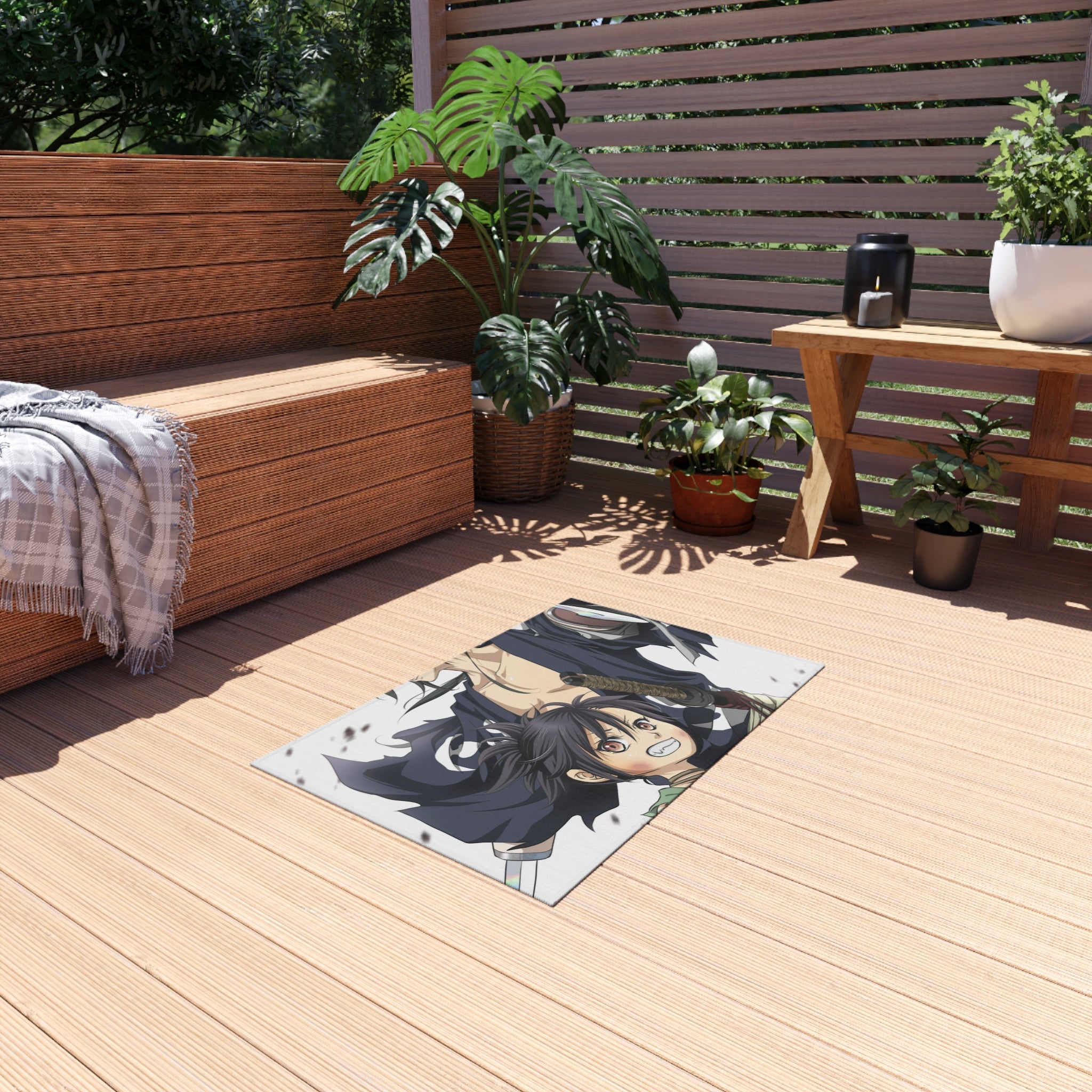 This area rug is crafted with durable construction and hemmed edges, offering lasting quality and style. A coated backing keeps the piece in place, making it the perfect finishing touch for any interior design. Vibrant colors and anime allow you to effortlessly match your existing aesthetic.