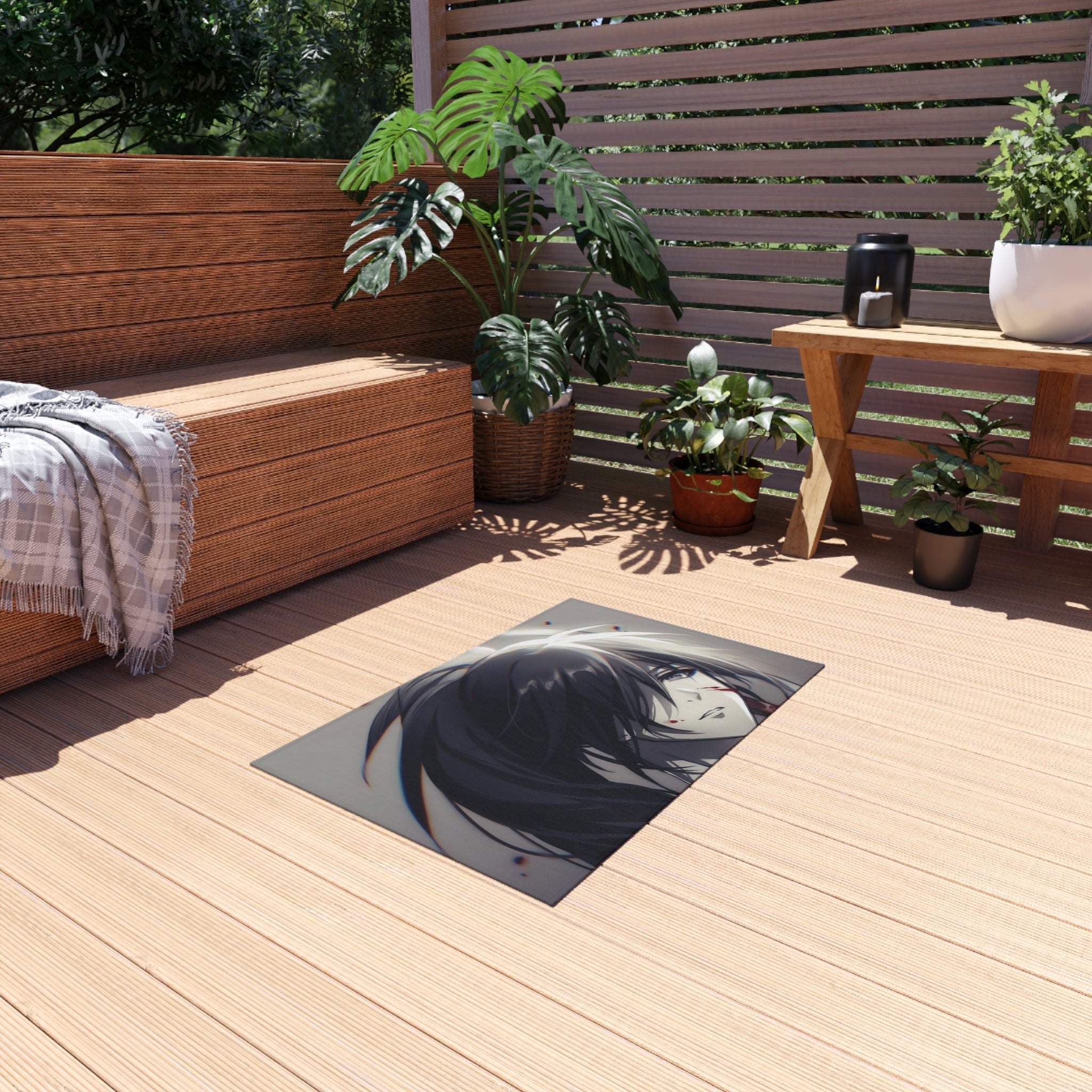 This area rug is crafted with durable construction and hemmed edges, offering lasting quality and style. A coated backing keeps the piece in place, making it the perfect finishing touch for any interior design. Vibrant colors and anime allow you to effortlessly match your existing aesthetic.