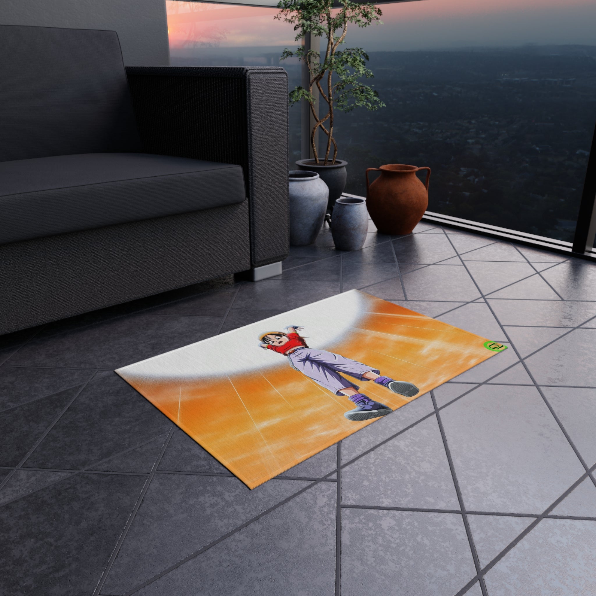 This area rug is crafted with durable construction and hemmed edges, offering lasting quality and style. A coated backing keeps the piece in place, making it the perfect finishing touch for any interior design. Vibrant colors and anime allow you to effortlessly match your existing aesthetic.