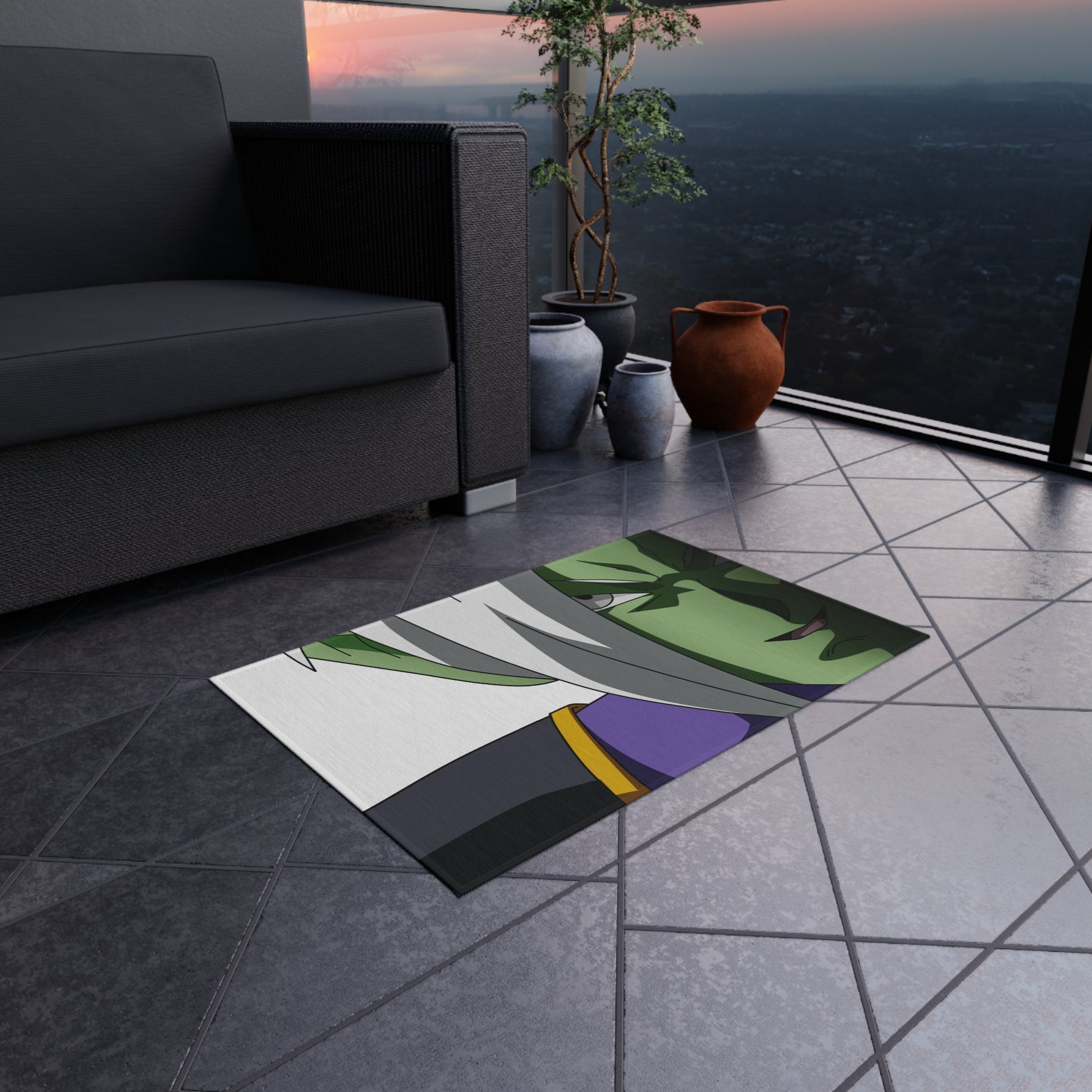 This area rug is crafted with durable construction and hemmed edges, offering lasting quality and style. A coated backing keeps the piece in place, making it the perfect finishing touch for any interior design. Vibrant colors and anime allow you to effortlessly match your existing aesthetic.