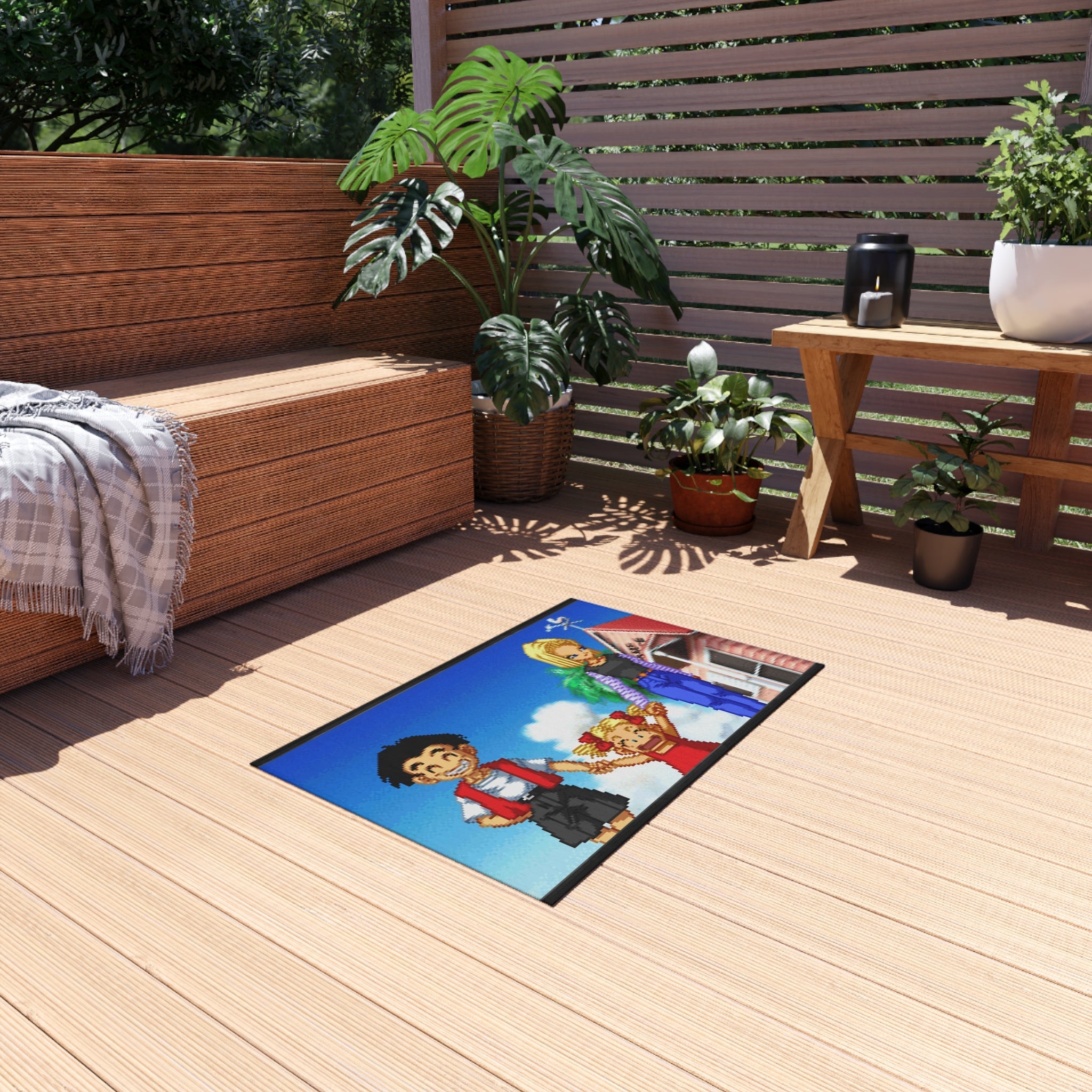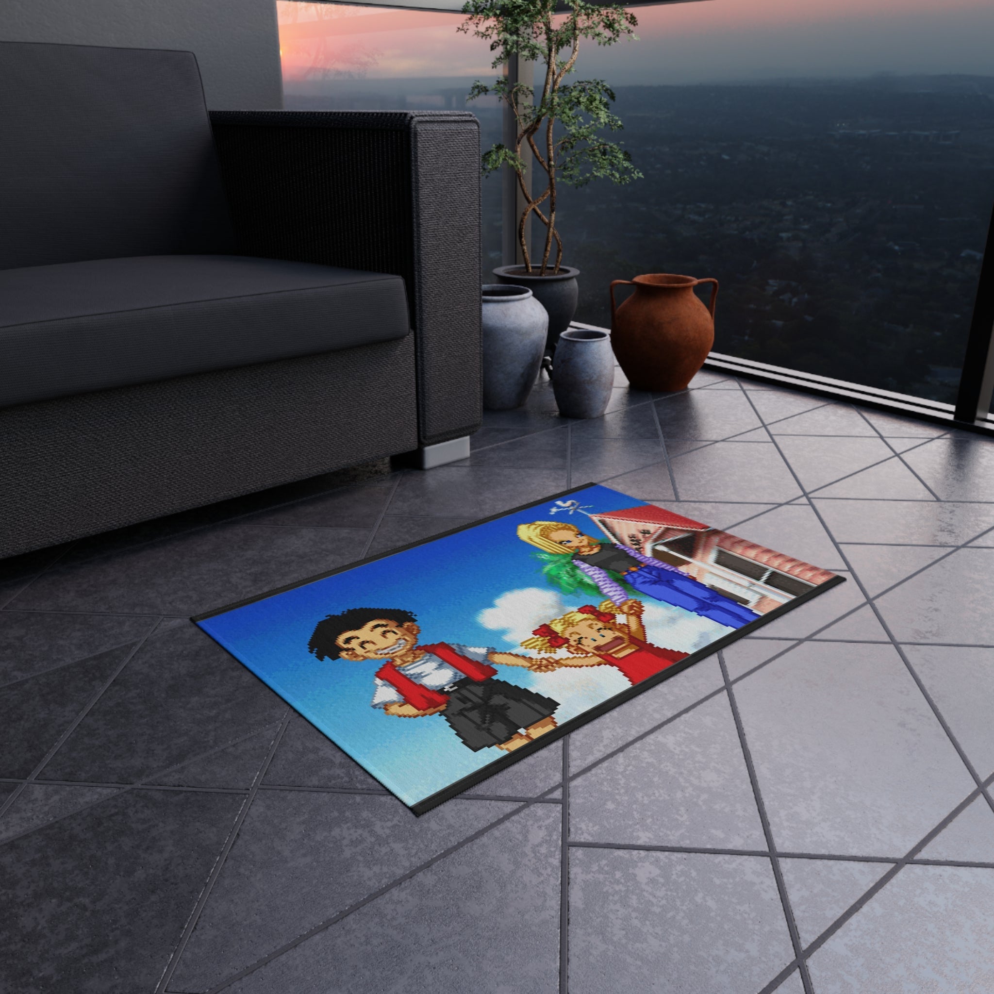 This area rug is crafted with durable construction and hemmed edges, offering lasting quality and style. A coated backing keeps the piece in place, making it the perfect finishing touch for any interior design. Vibrant colors and anime allow you to effortlessly match your existing aesthetic.