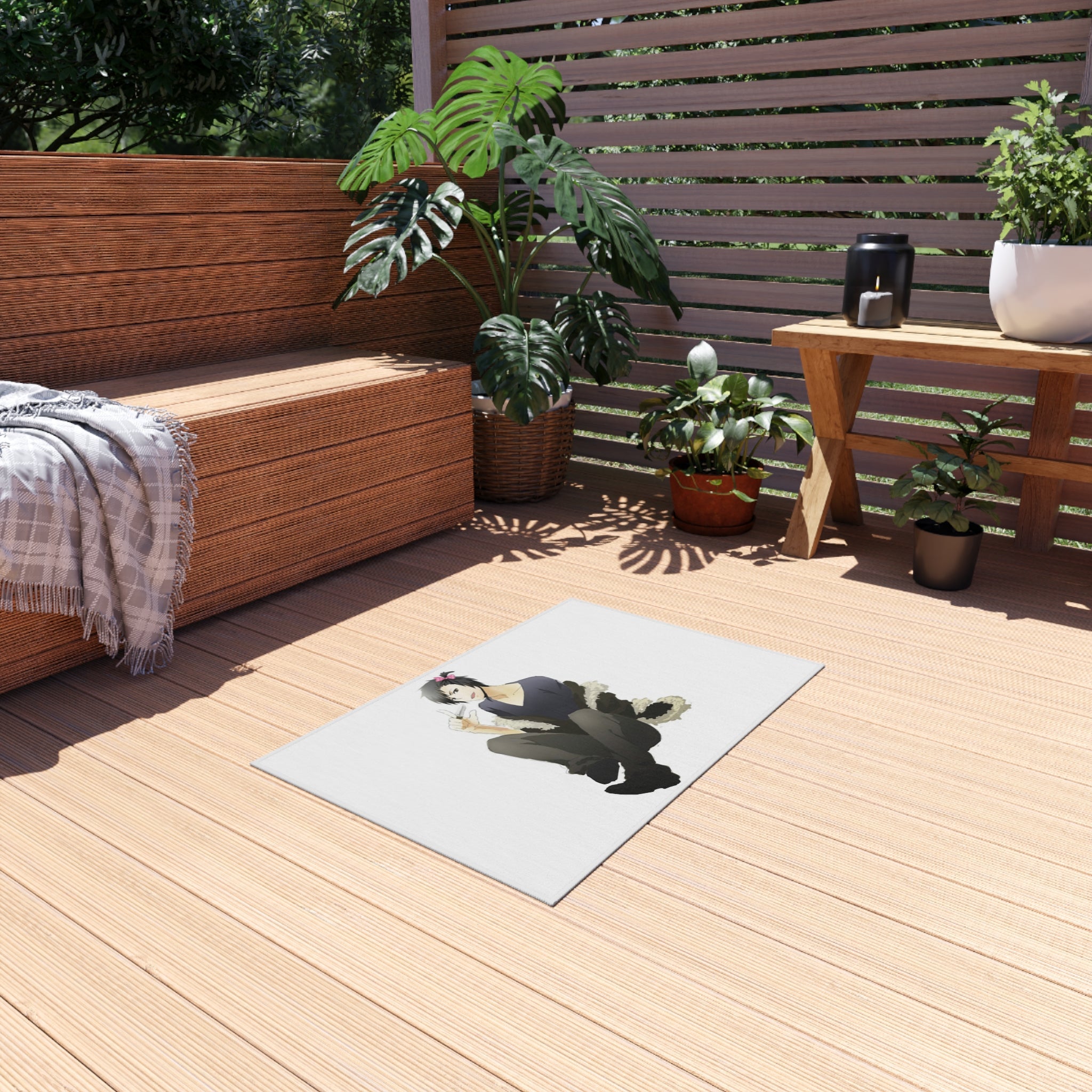 This area rug is crafted with durable construction and hemmed edges, offering lasting quality and style. A coated backing keeps the piece in place, making it the perfect finishing touch for any interior design. Vibrant colors and anime allow you to effortlessly match your existing aesthetic.