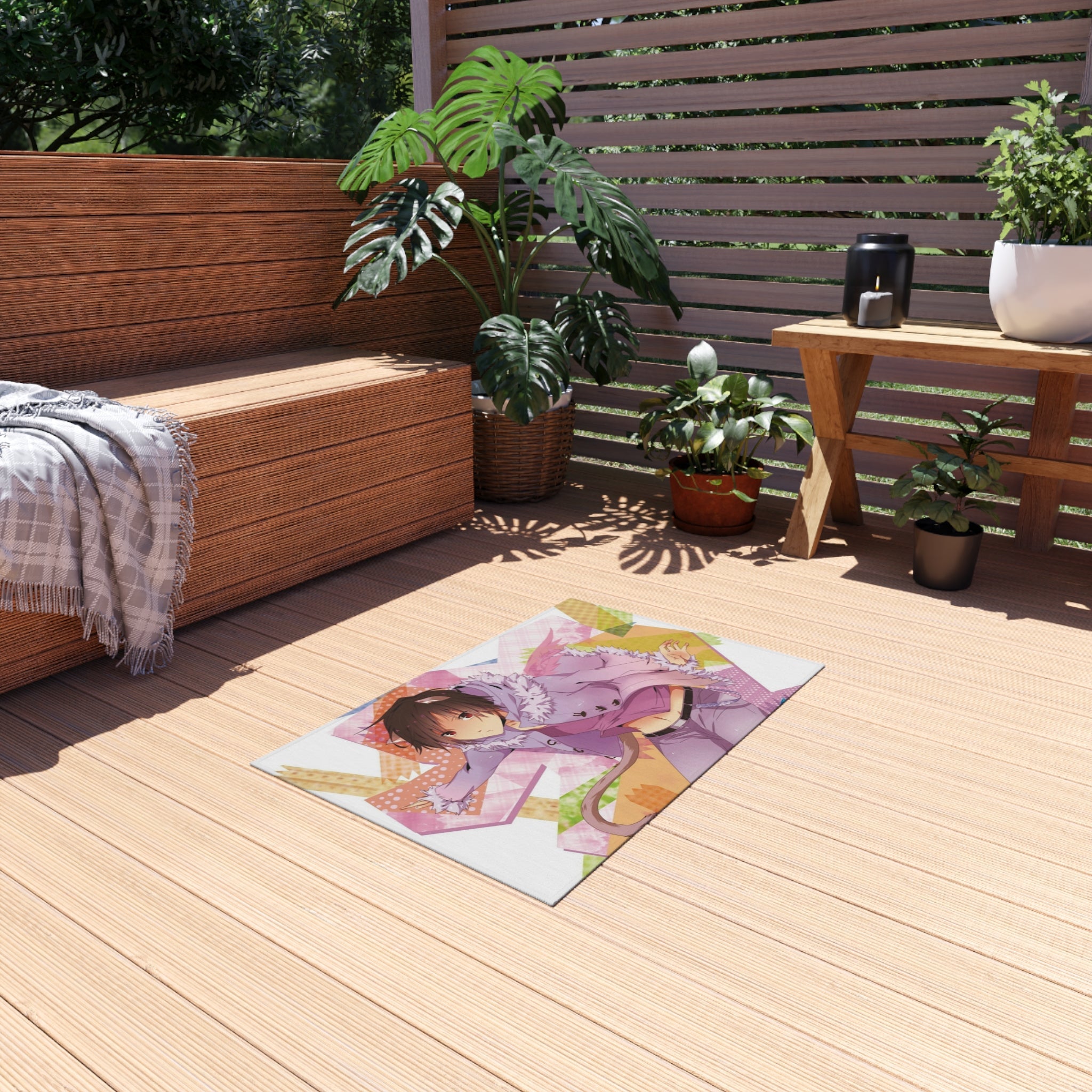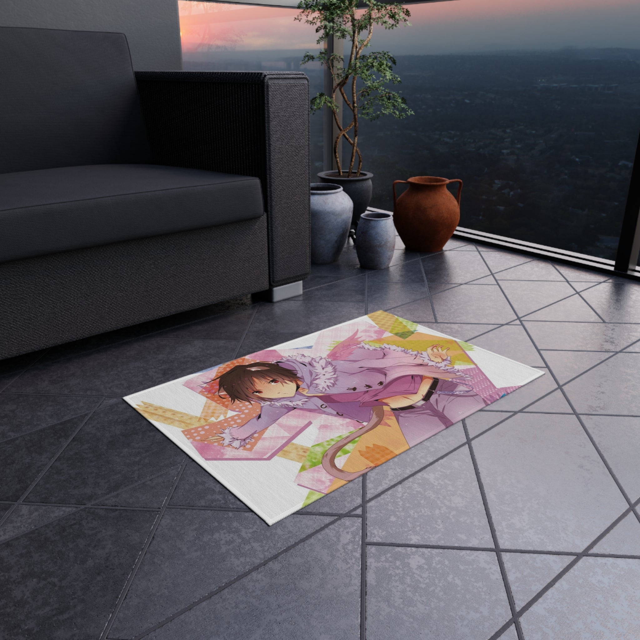 This area rug is crafted with durable construction and hemmed edges, offering lasting quality and style. A coated backing keeps the piece in place, making it the perfect finishing touch for any interior design. Vibrant colors and anime allow you to effortlessly match your existing aesthetic.
