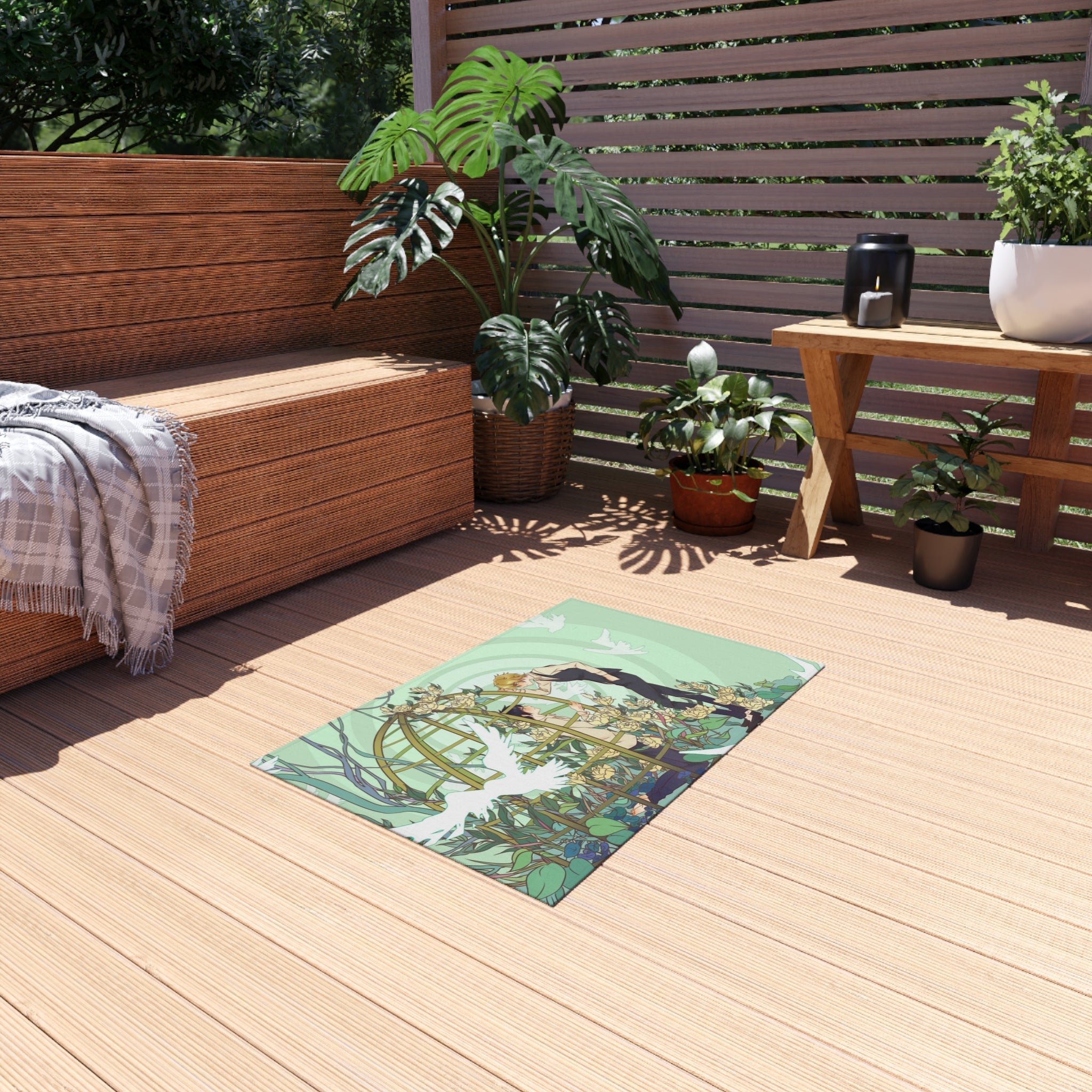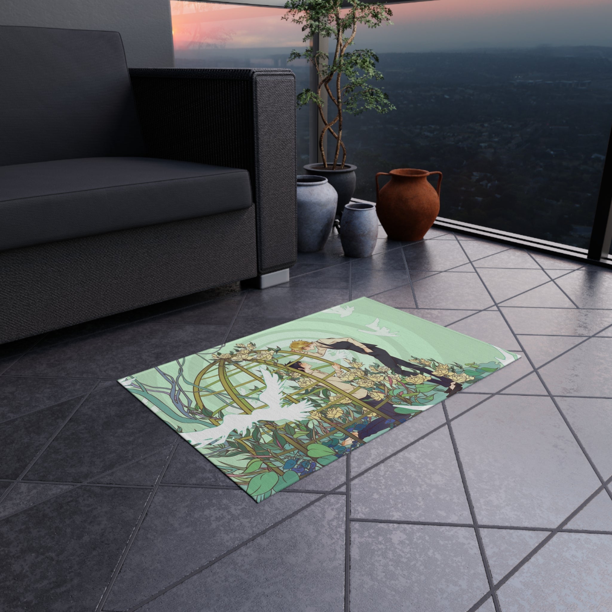This area rug is crafted with durable construction and hemmed edges, offering lasting quality and style. A coated backing keeps the piece in place, making it the perfect finishing touch for any interior design. Vibrant colors and anime allow you to effortlessly match your existing aesthetic.