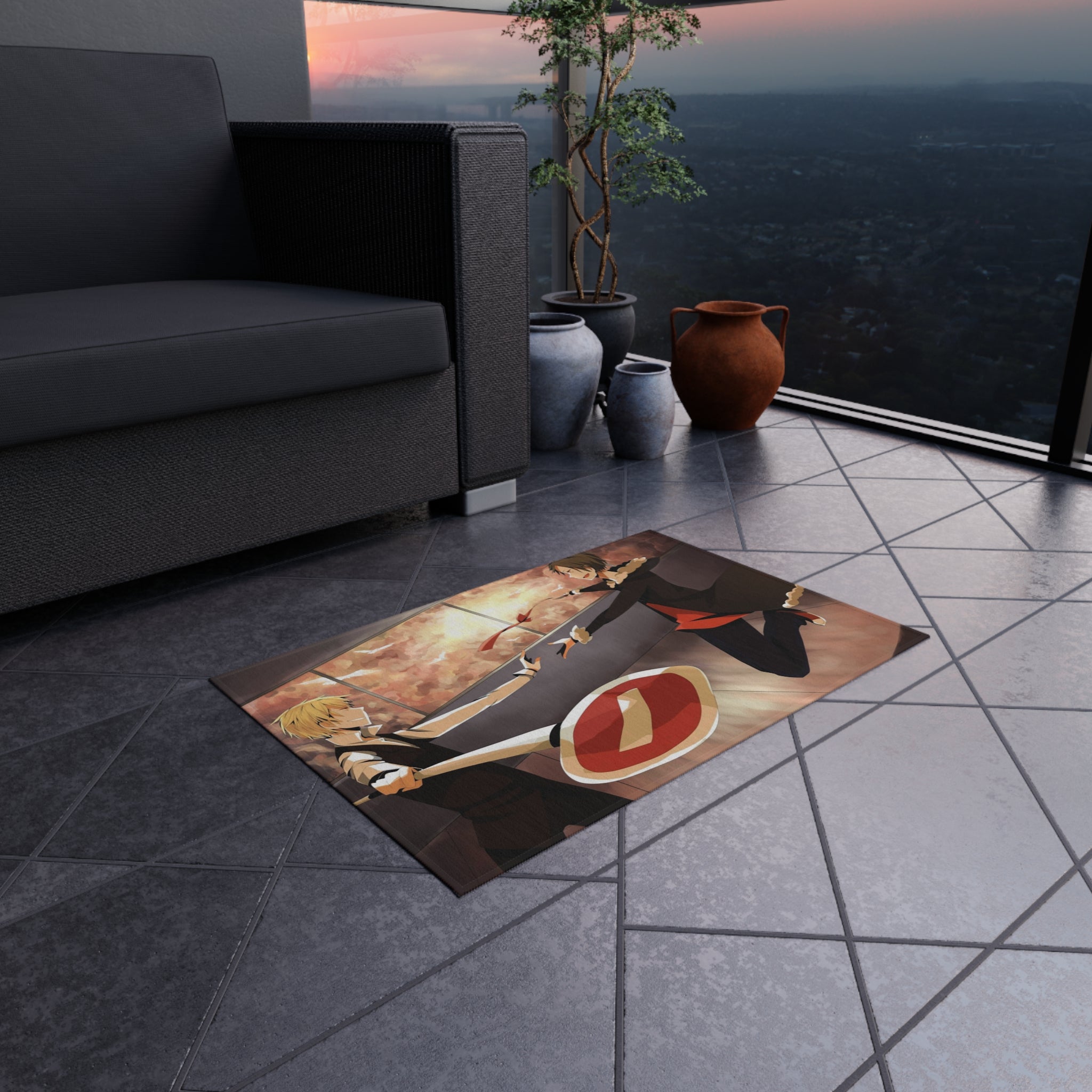 This area rug is crafted with durable construction and hemmed edges, offering lasting quality and style. A coated backing keeps the piece in place, making it the perfect finishing touch for any interior design. Vibrant colors and anime allow you to effortlessly match your existing aesthetic.