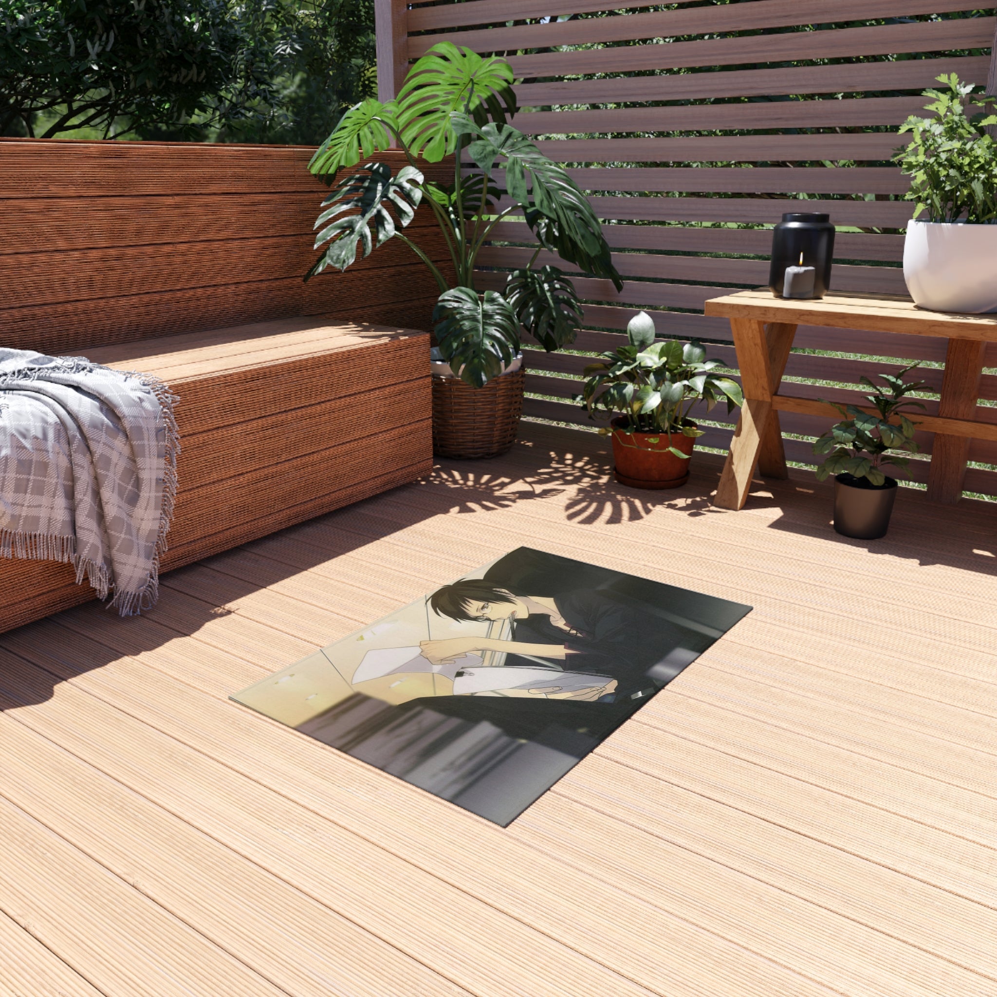 This area rug is crafted with durable construction and hemmed edges, offering lasting quality and style. A coated backing keeps the piece in place, making it the perfect finishing touch for any interior design. Vibrant colors and anime allow you to effortlessly match your existing aesthetic.