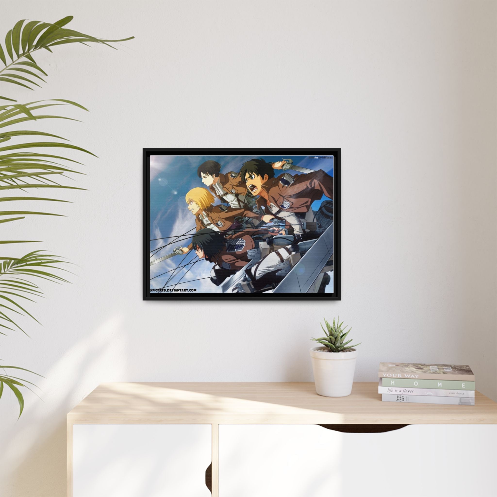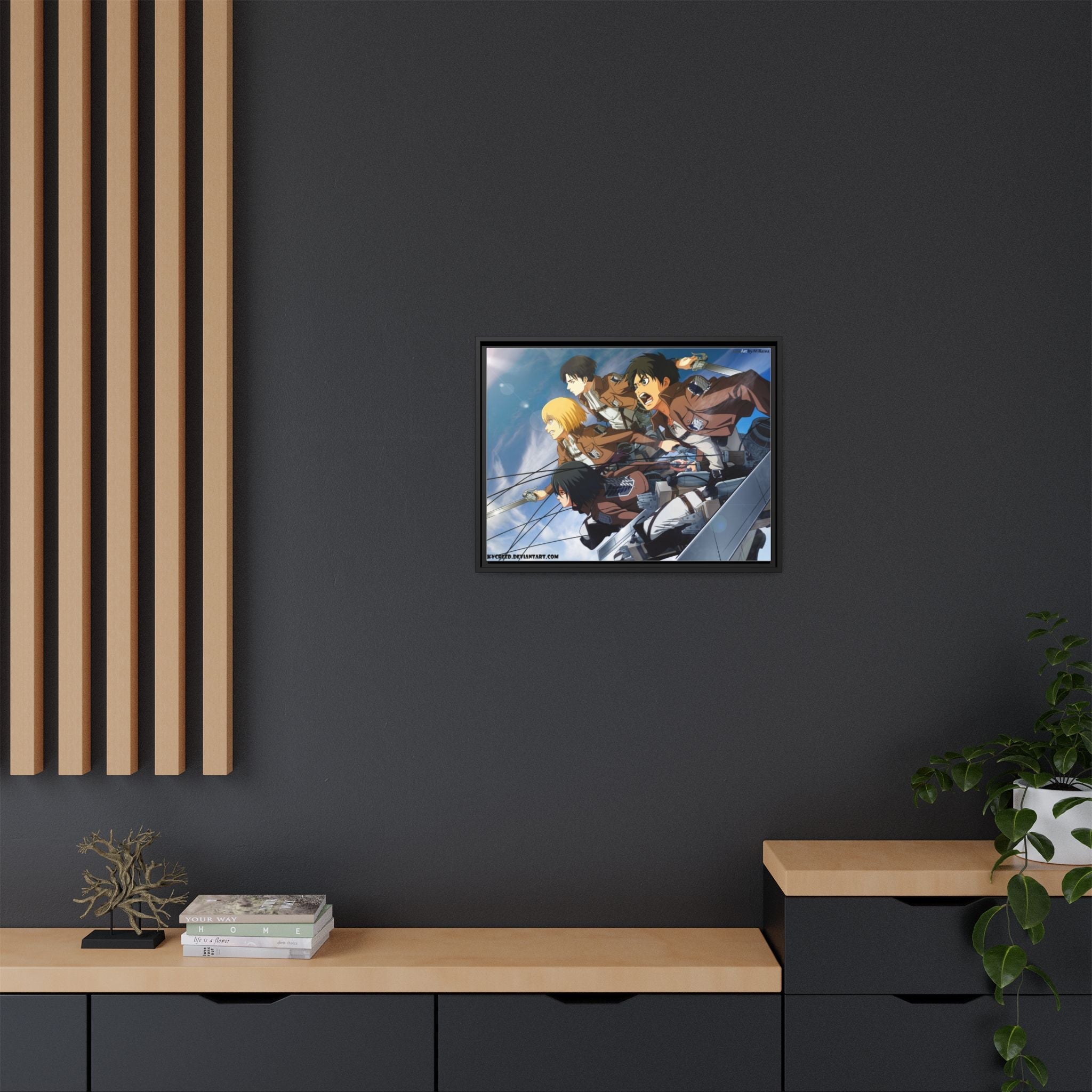 Eren,Mikasa,Armin and Levi Canvas Framed Art Print