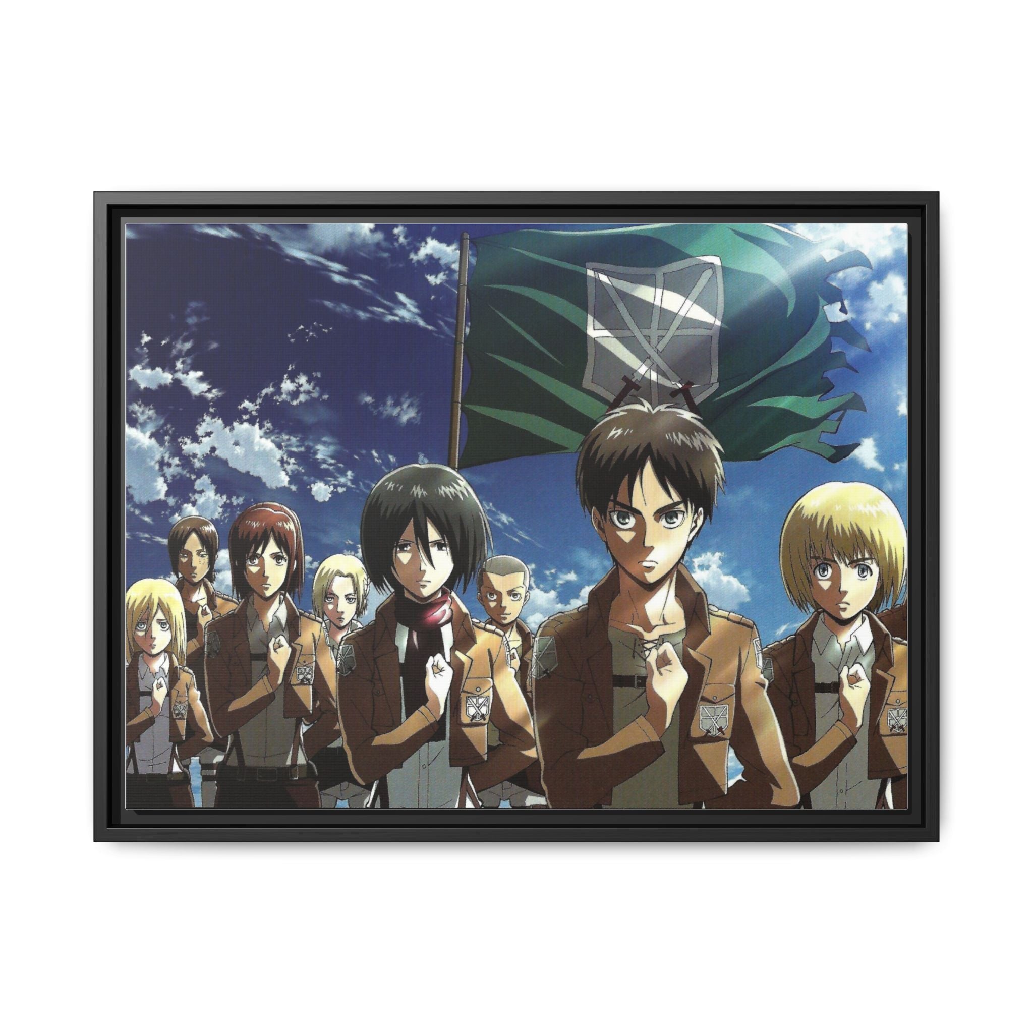 Eren yeager With Team Canvas Framed Art Print
