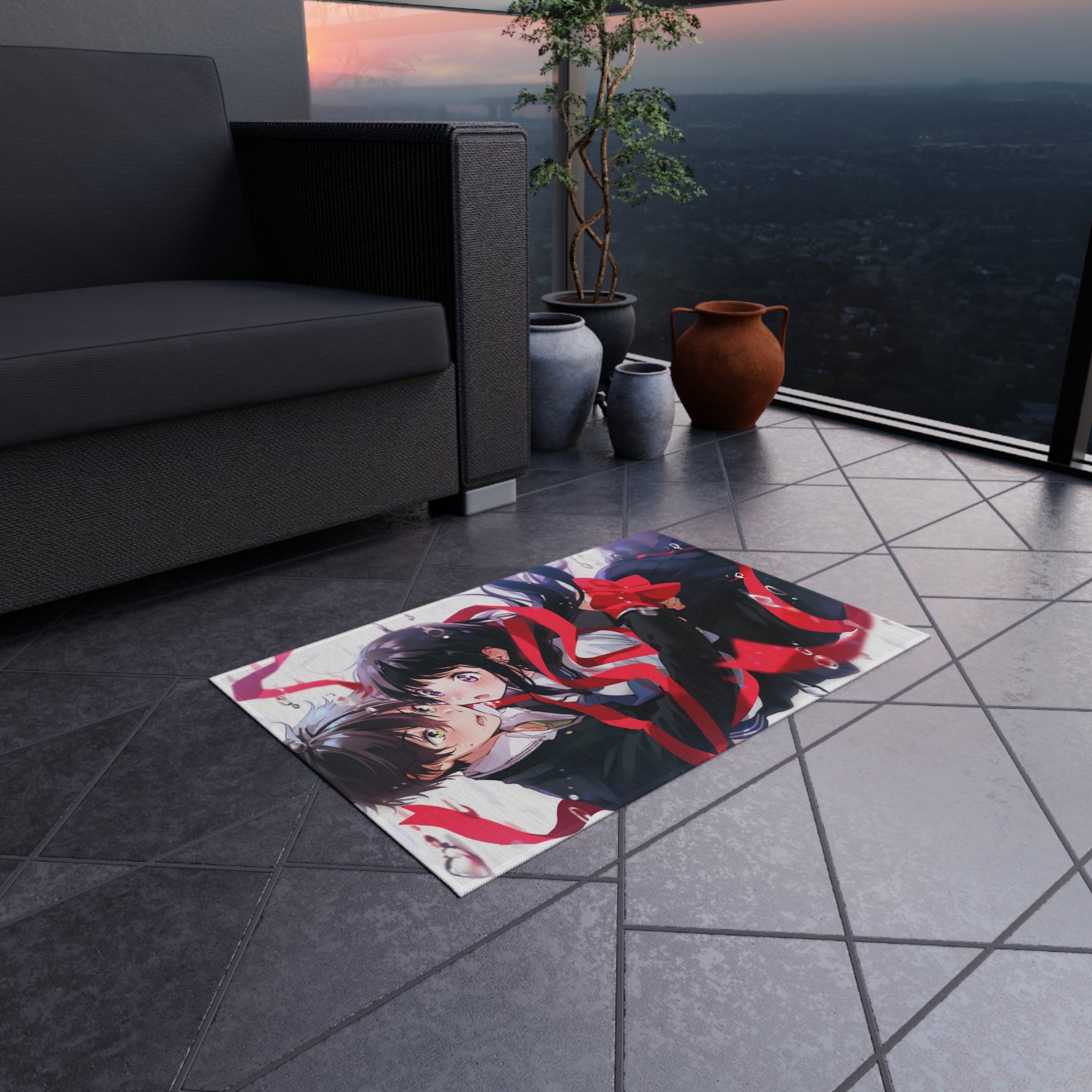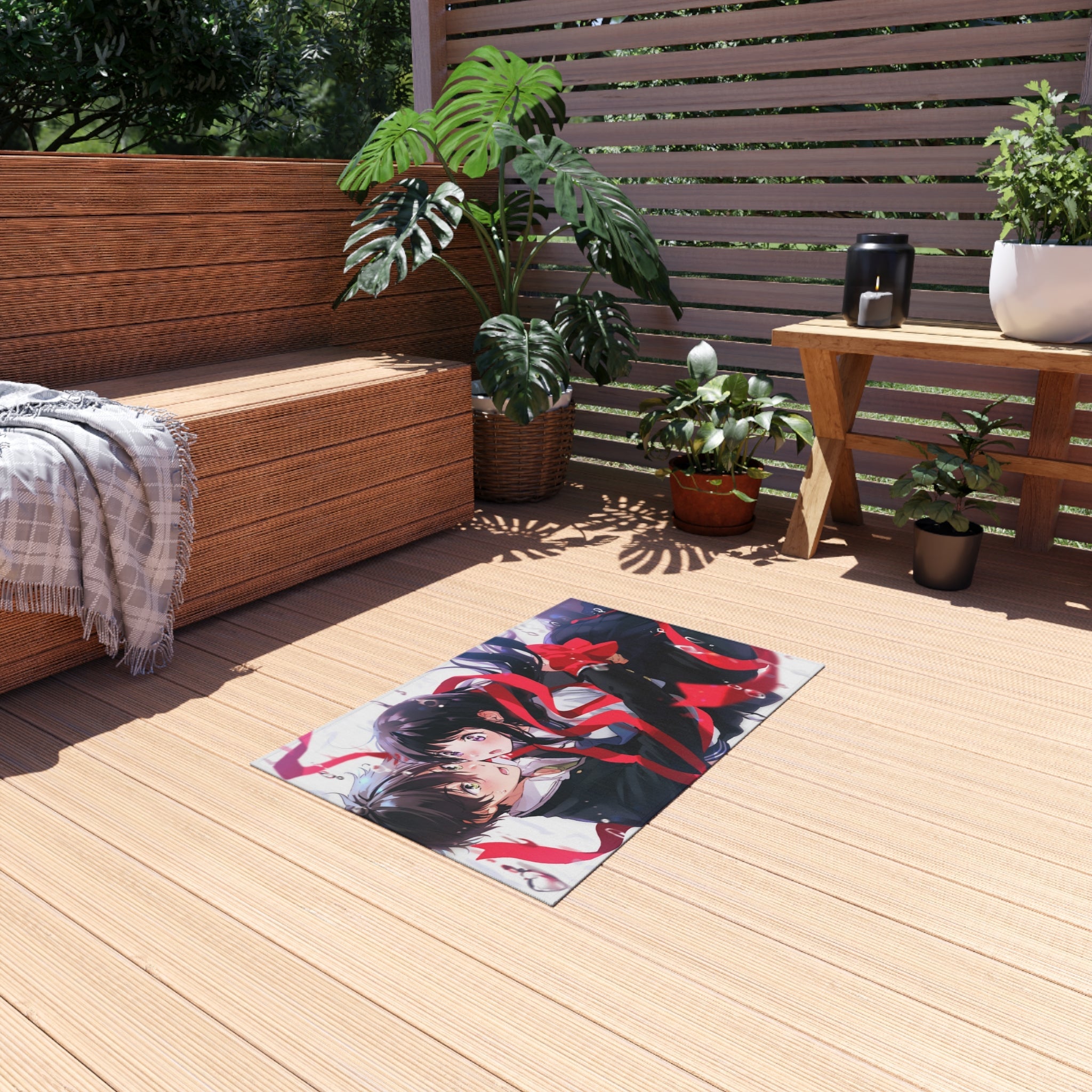 This area rug is crafted with durable construction and hemmed edges, offering lasting quality and style. A coated backing keeps the piece in place, making it the perfect finishing touch for any interior design. Vibrant colors and anime allow you to effortlessly match your existing aesthetic.