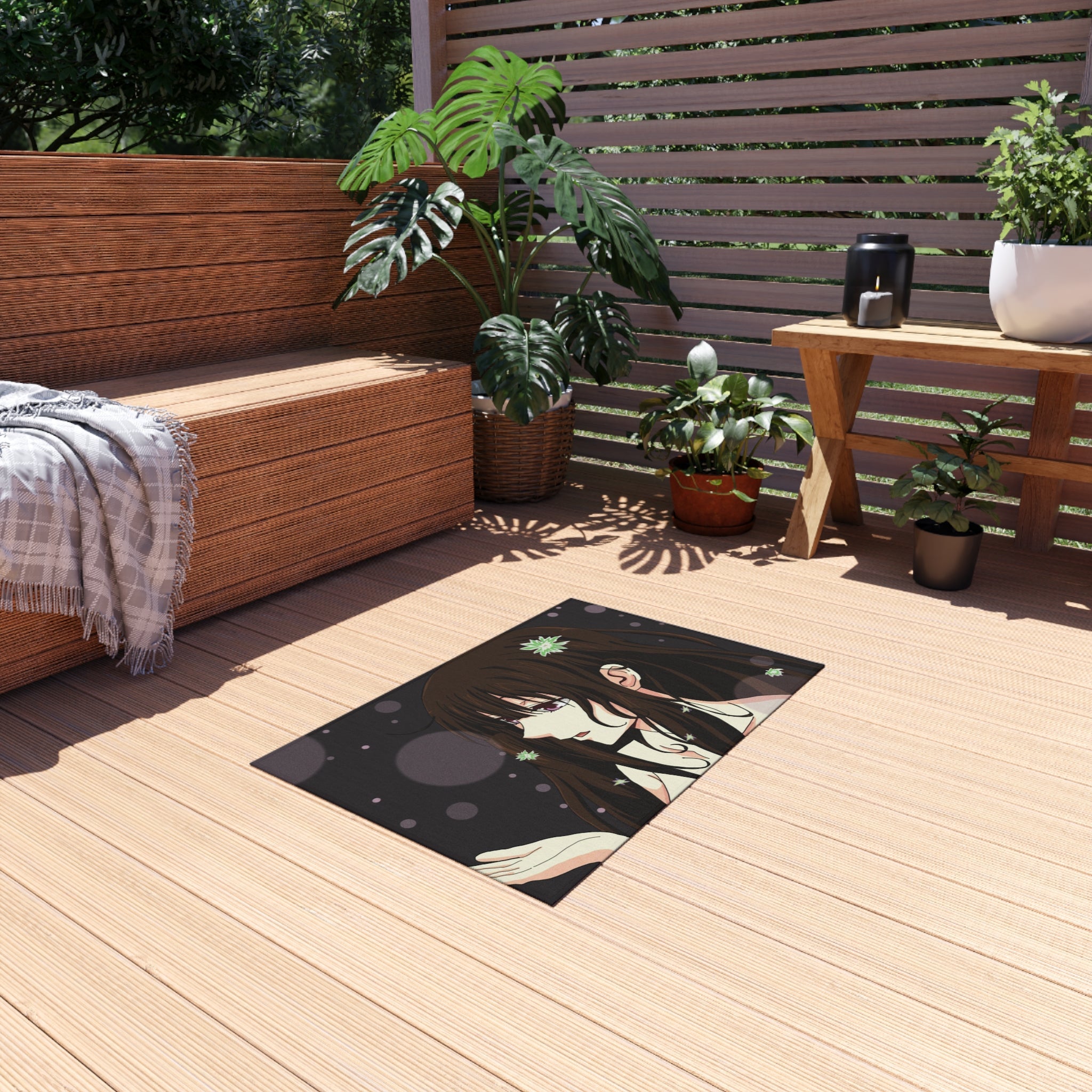 This area rug is crafted with durable construction and hemmed edges, offering lasting quality and style. A coated backing keeps the piece in place, making it the perfect finishing touch for any interior design. Vibrant colors and anime allow you to effortlessly match your existing aesthetic.