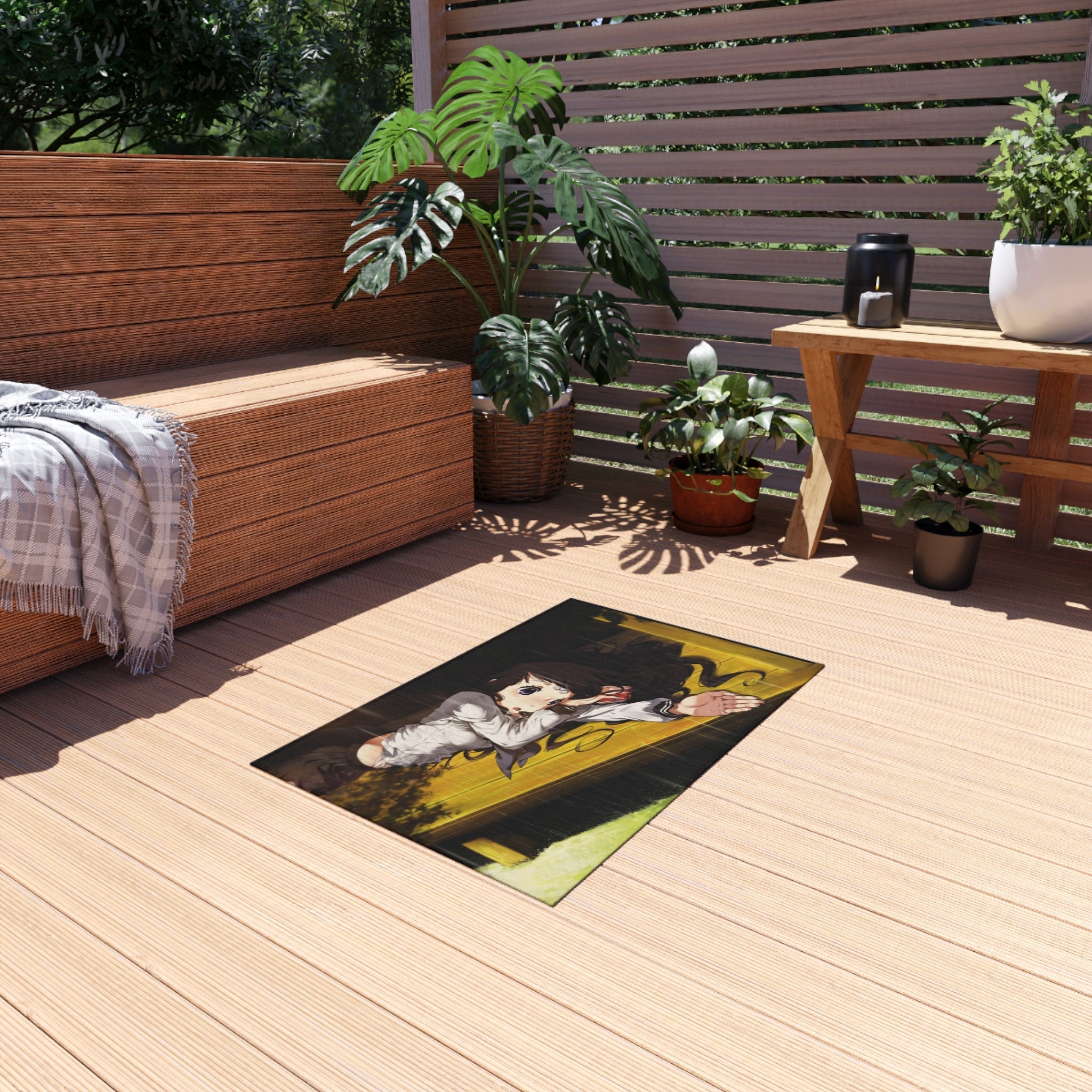 This area rug is crafted with durable construction and hemmed edges, offering lasting quality and style. A coated backing keeps the piece in place, making it the perfect finishing touch for any interior design. Vibrant colors and anime allow you to effortlessly match your existing aesthetic.