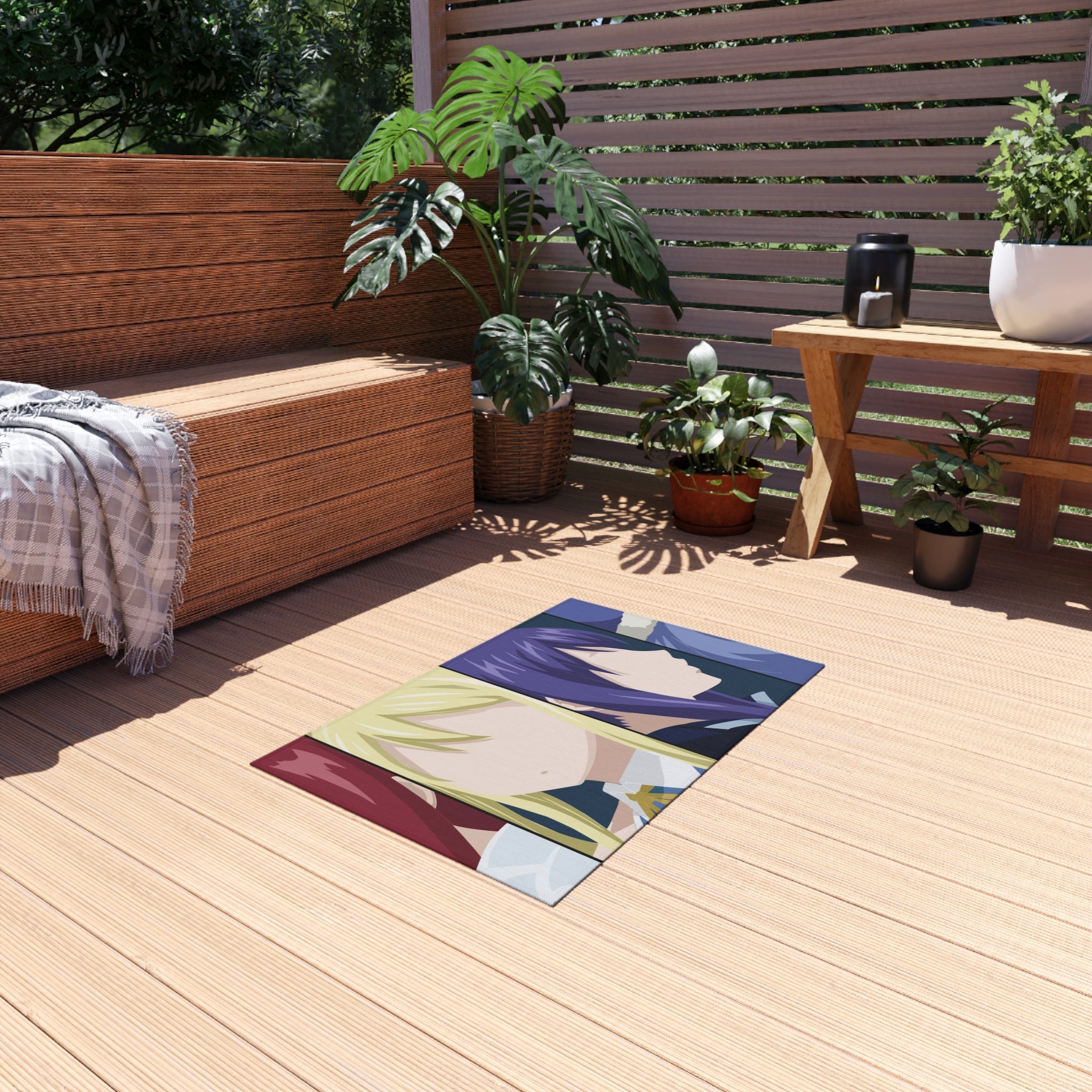 This area rug is crafted with durable construction and hemmed edges, offering lasting quality and style. A coated backing keeps the piece in place, making it the perfect finishing touch for any interior design. Vibrant colors and anime allow you to effortlessly match your existing aesthetic.