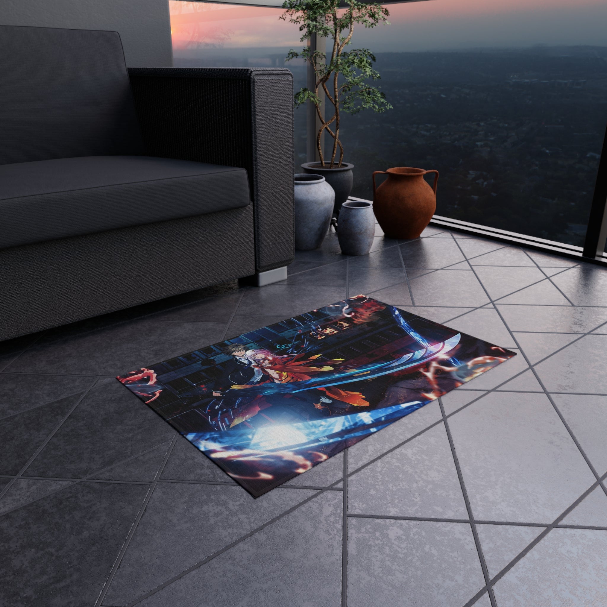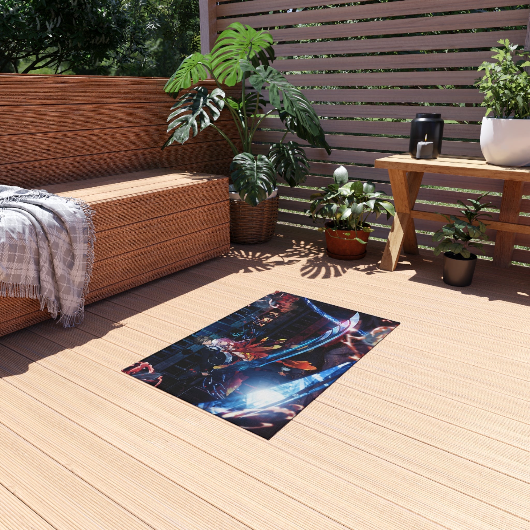 This area rug is crafted with durable construction and hemmed edges, offering lasting quality and style. A coated backing keeps the piece in place, making it the perfect finishing touch for any interior design. Vibrant colors and anime allow you to effortlessly match your existing aesthetic.