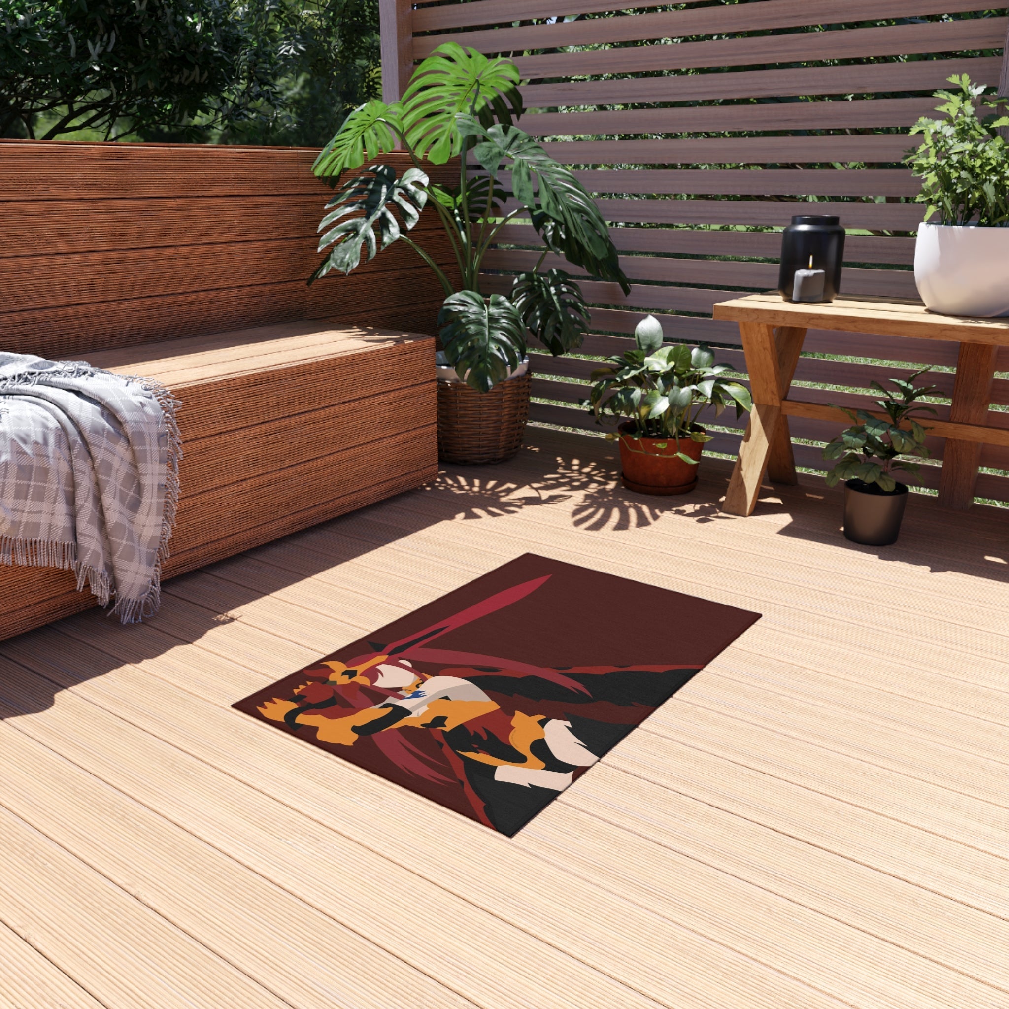 This area rug is crafted with durable construction and hemmed edges, offering lasting quality and style. A coated backing keeps the piece in place, making it the perfect finishing touch for any interior design. Vibrant colors and anime allow you to effortlessly match your existing aesthetic.