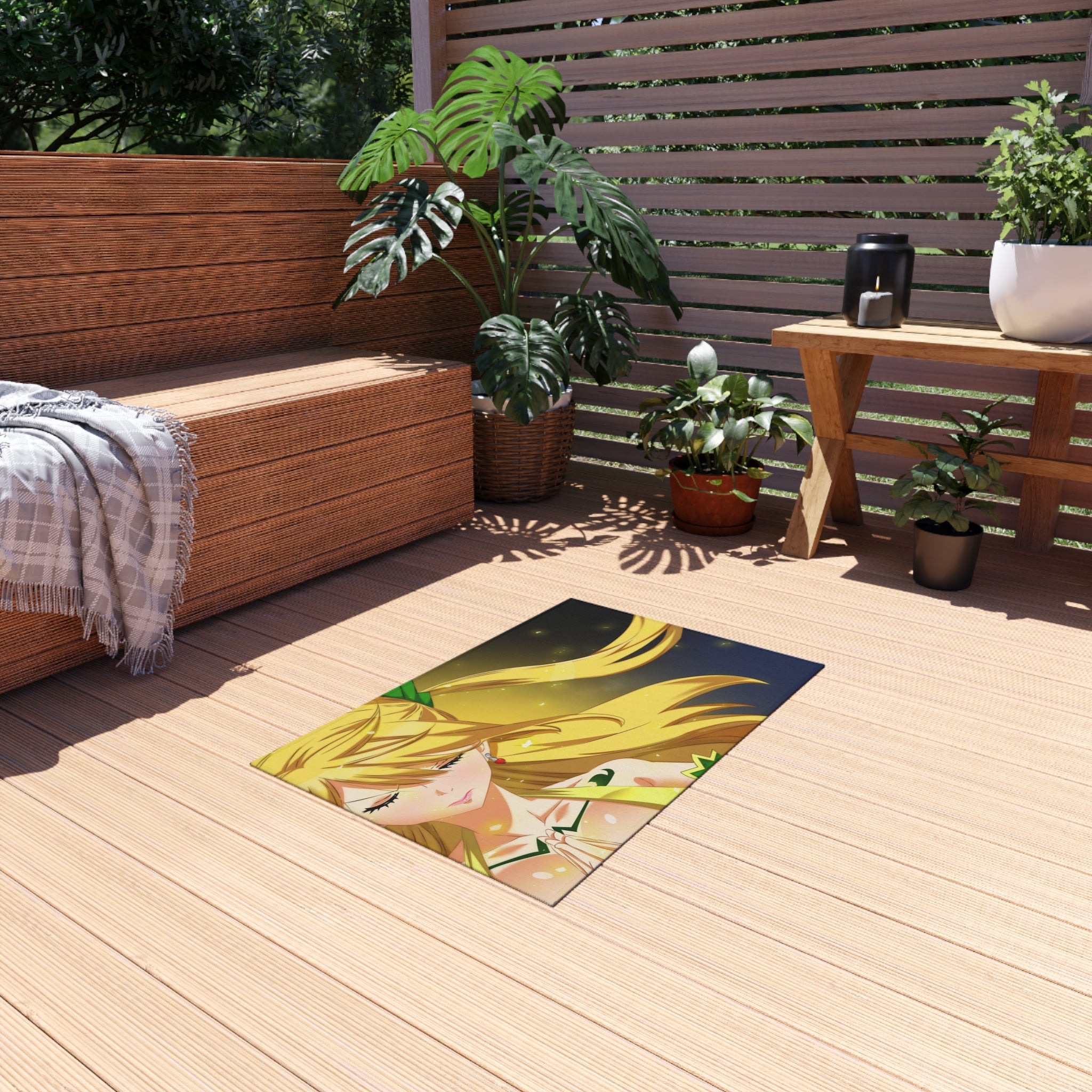 This area rug is crafted with durable construction and hemmed edges, offering lasting quality and style. A coated backing keeps the piece in place, making it the perfect finishing touch for any interior design. Vibrant colors and anime allow you to effortlessly match your existing aesthetic.