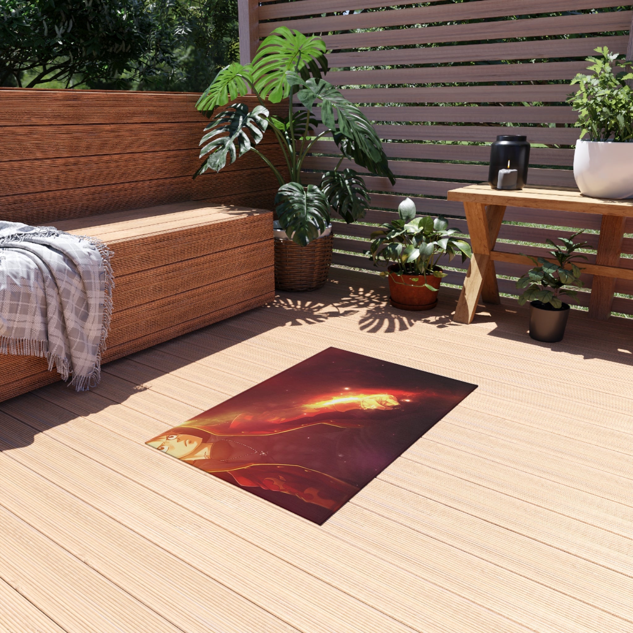 This area rug is crafted with durable construction and hemmed edges, offering lasting quality and style. A coated backing keeps the piece in place, making it the perfect finishing touch for any interior design. Vibrant colors and anime allow you to effortlessly match your existing aesthetic.