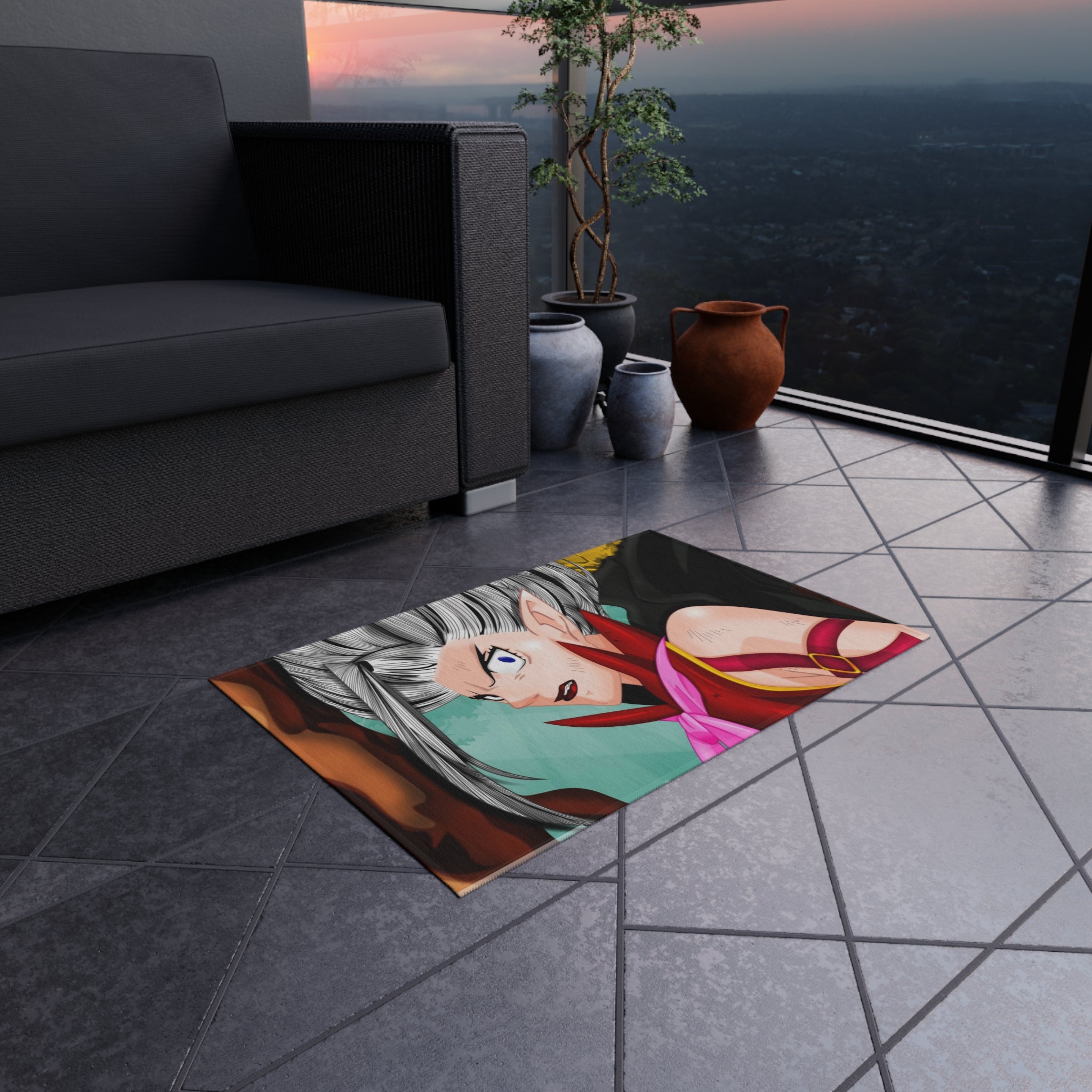 This area rug is crafted with durable construction and hemmed edges, offering lasting quality and style. A coated backing keeps the piece in place, making it the perfect finishing touch for any interior design. Vibrant colors and anime allow you to effortlessly match your existing aesthetic.