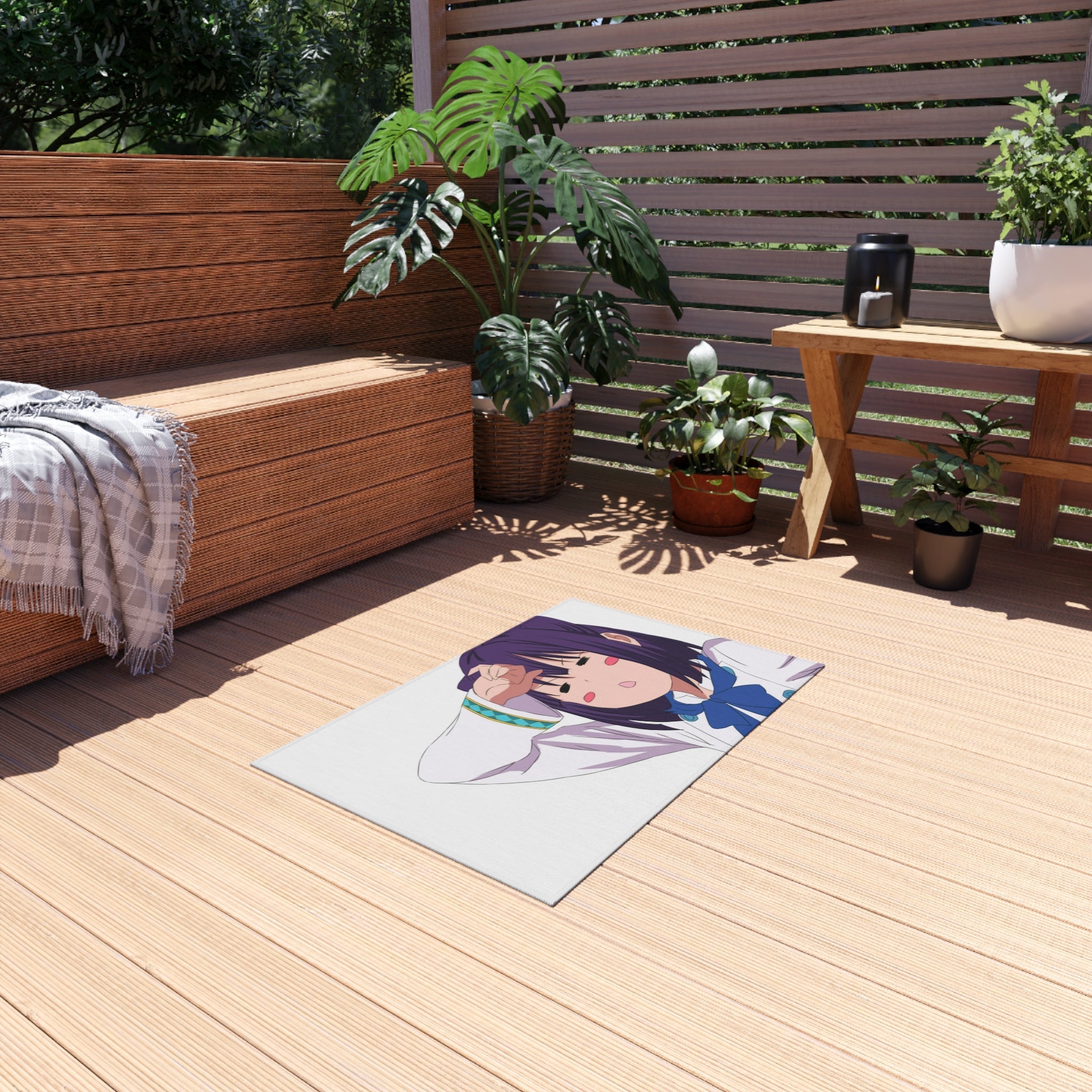 This area rug is crafted with durable construction and hemmed edges, offering lasting quality and style. A coated backing keeps the piece in place, making it the perfect finishing touch for any interior design. Vibrant colors and anime allow you to effortlessly match your existing aesthetic.
