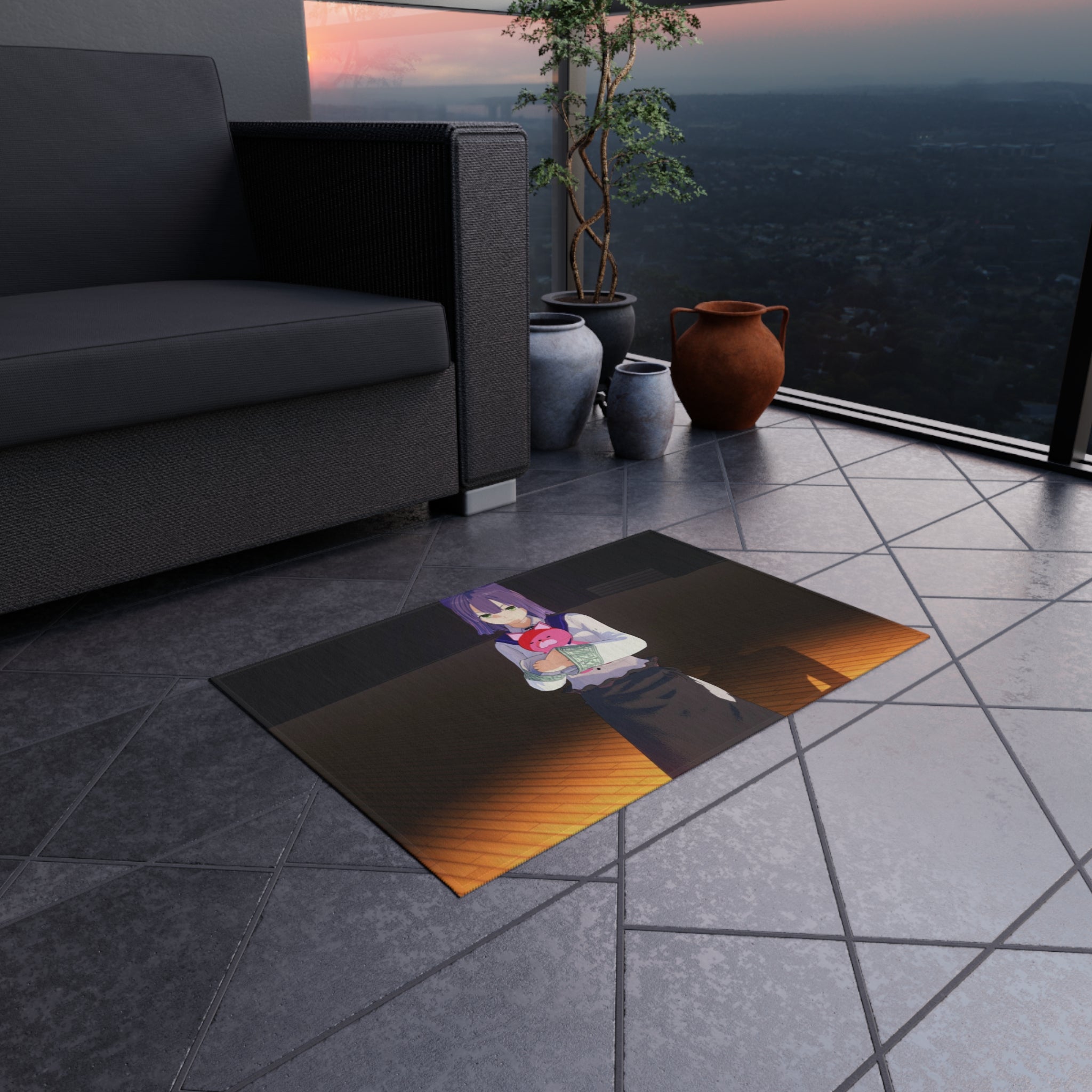 This area rug is crafted with durable construction and hemmed edges, offering lasting quality and style. A coated backing keeps the piece in place, making it the perfect finishing touch for any interior design. Vibrant colors and anime allow you to effortlessly match your existing aesthetic.