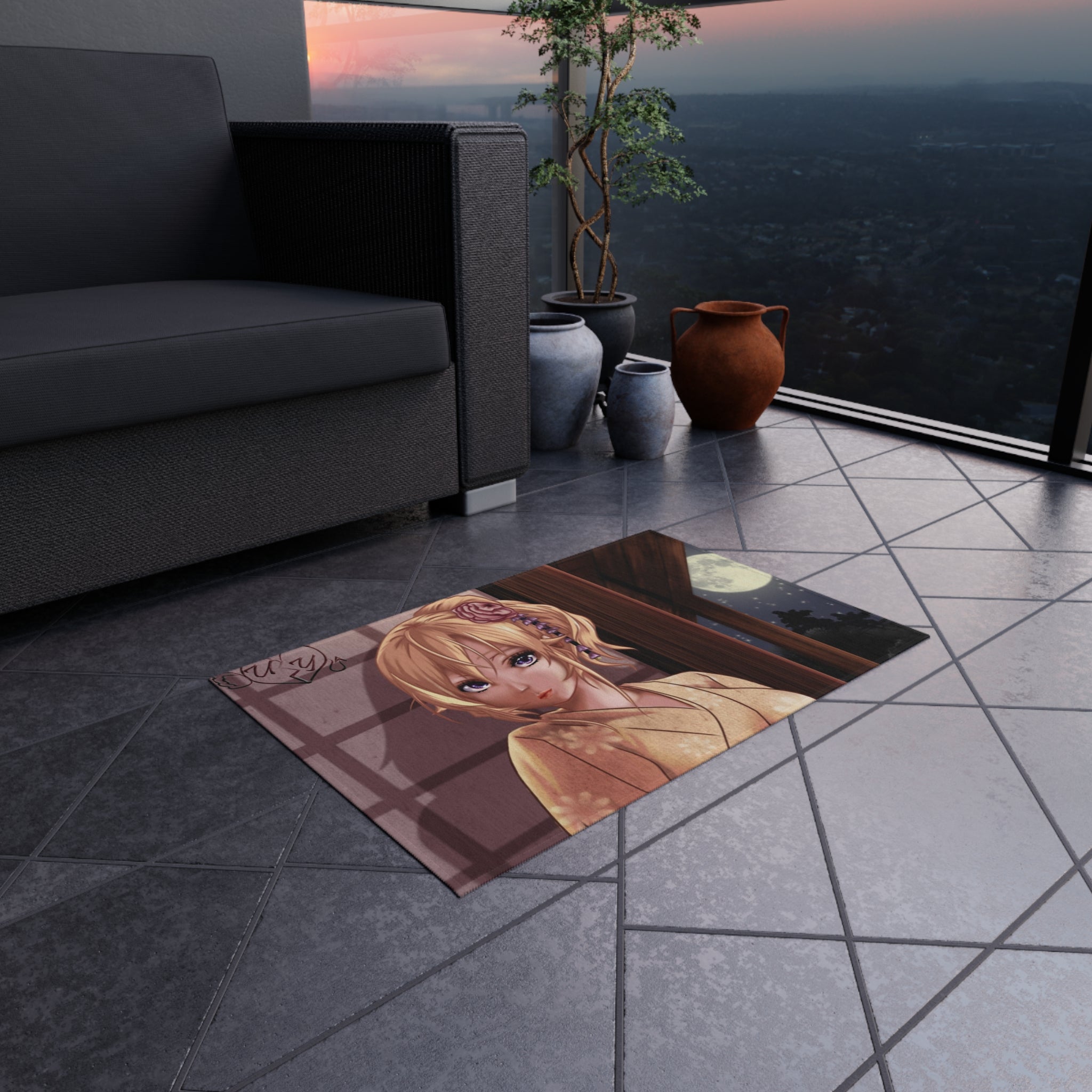 This area rug is crafted with durable construction and hemmed edges, offering lasting quality and style. A coated backing keeps the piece in place, making it the perfect finishing touch for any interior design. Vibrant colors and anime allow you to effortlessly match your existing aesthetic.