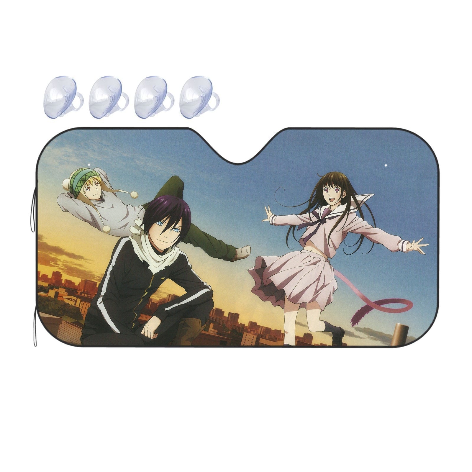Showcase your favorite anime and protect your car's interior with this premium sunshade that blends vibrant fan art with essential protection.