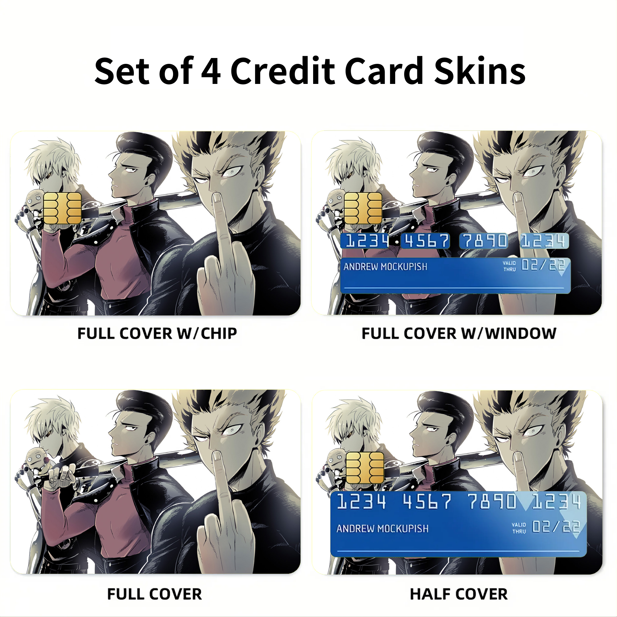 Genos, Metal Bat and Garou Credit Card Skins (4-in-1 Pack)