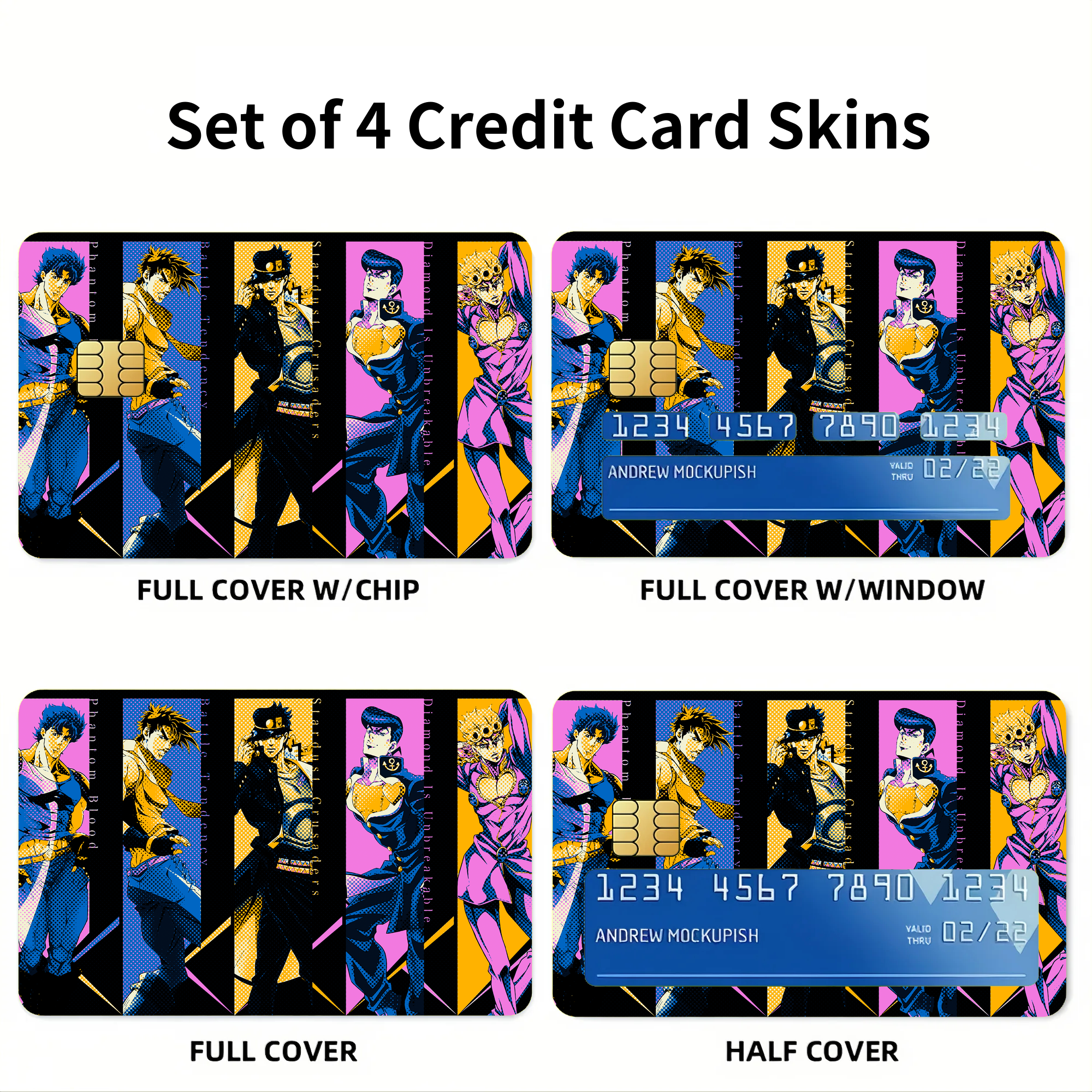 Giorno Giovanna Joseph Joestar Jotaro Kujo Josuke Higashikata and Jonathan Joestar Credit Card Skins (4-in-1 Pack)