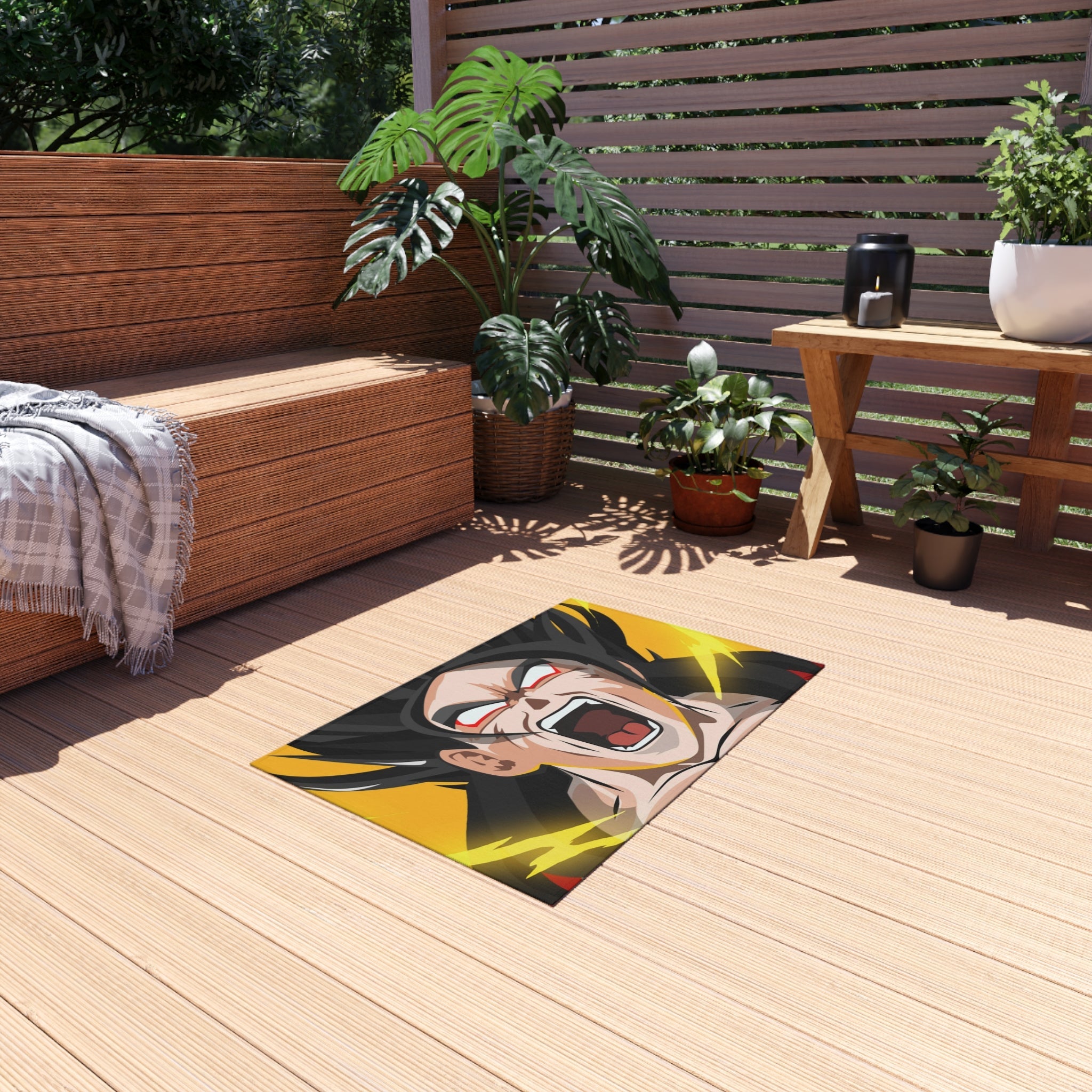This area rug is crafted with durable construction and hemmed edges, offering lasting quality and style. A coated backing keeps the piece in place, making it the perfect finishing touch for any interior design. Vibrant colors and anime allow you to effortlessly match your existing aesthetic.