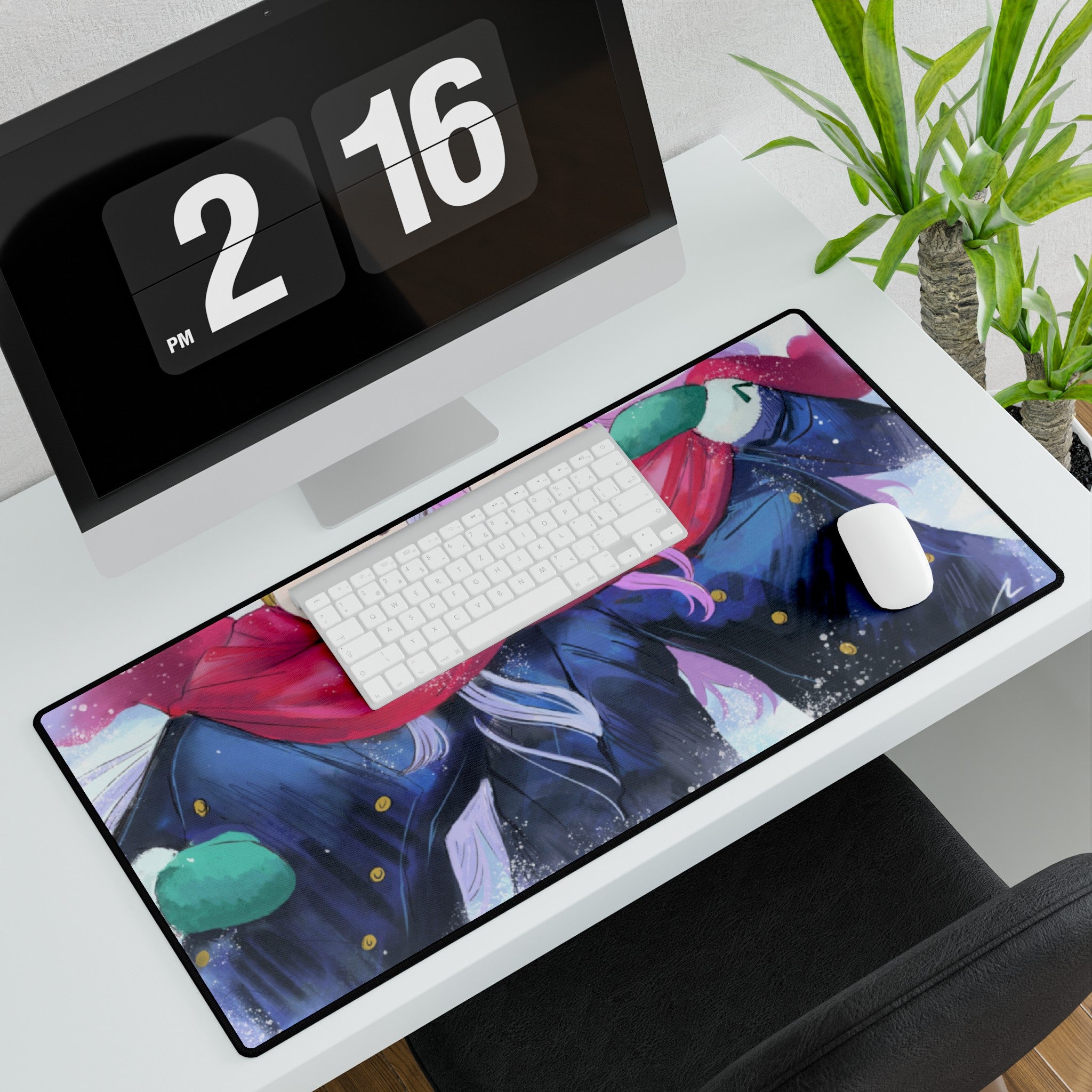 This mouse pad (desk mat) is perfect for that extra personal touch at work or in your home office. Made of polyester and rubber, it has an anti-slip backing and a hemmed edge for durability and stability.