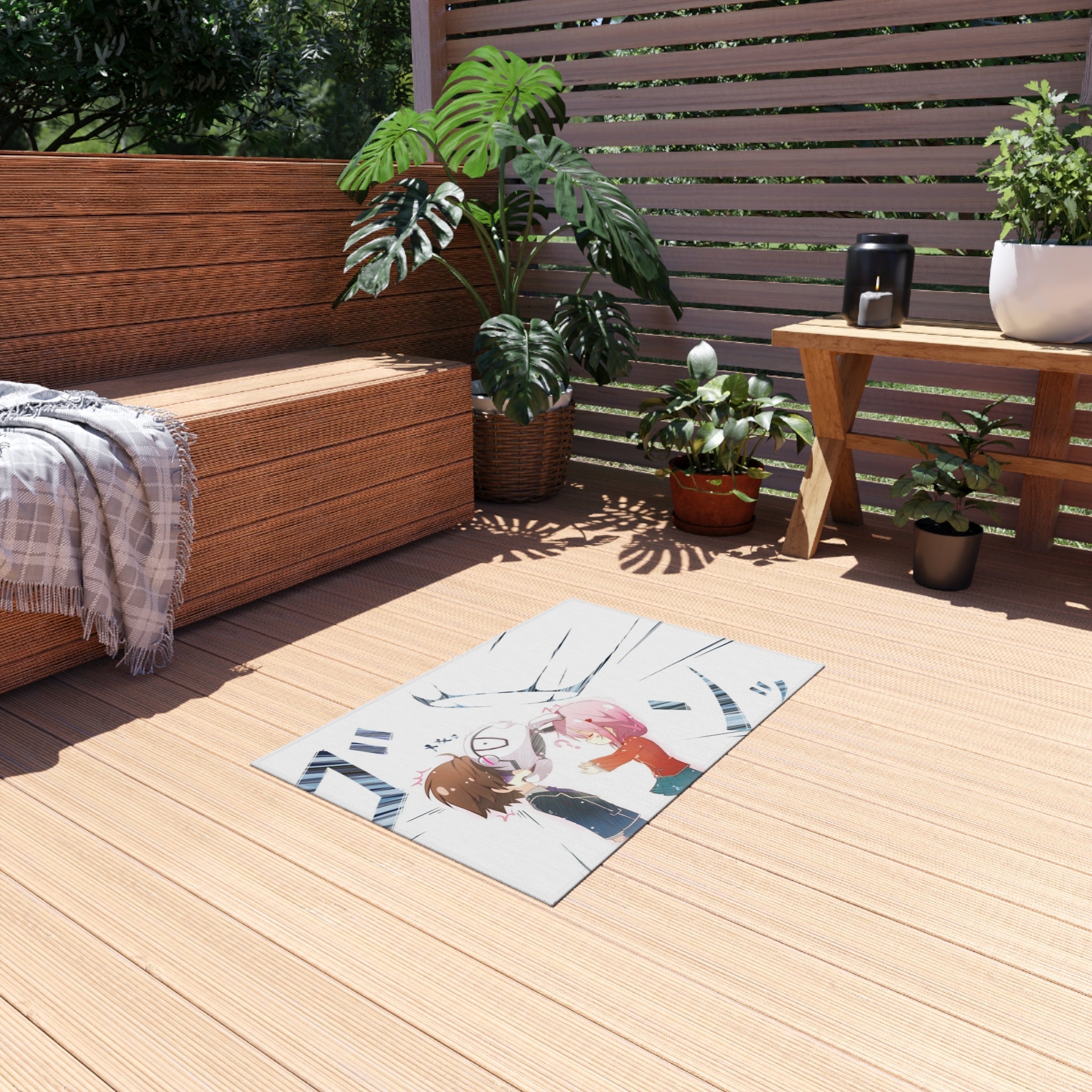 This area rug is crafted with durable construction and hemmed edges, offering lasting quality and style. A coated backing keeps the piece in place, making it the perfect finishing touch for any interior design. Vibrant colors and anime allow you to effortlessly match your existing aesthetic.